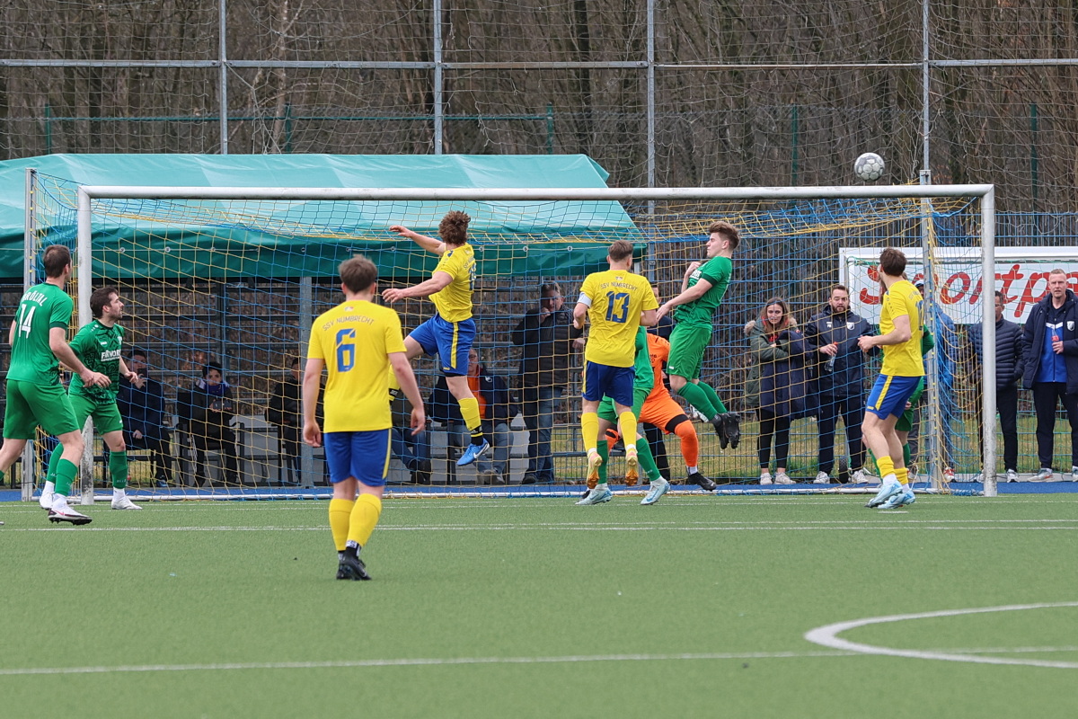 Die Hausherren haben die Pflichtaufgabe erledigt. Drückend überlegen dauerte es nicht lange, ehe der HSV in Führung ging. Jannik Pütz traf mit einem satten Schuss aus 20 Metern. Sehenswert wurde es beim zweiten Treffer. Nach einem Pass in die Schnittstelle der Biesfelder Abwehrkette lupfte Lucas Musculus den Ball über Blau-Weiß-Torwart Konstantin Josten hinweg ins Netz. Noch vor der Pause erhöhte Musculus auf 3:0. Mit einem Traumtor machten die Gastgeber kurz nach dem Seitenwechsel den Deckel drauf. Jannik Pütz knallte das Rund vom Sechzehnereck volley in den Torwinkel.