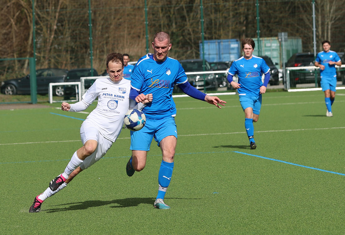 Im ersten Durchgang hatte es der VfR mit einem gleichwertigen Gegner zu tun und einem übermächtigen. Gegen den gleichwertigen konnte man spielerisch dagegenhalten, gegen den übermächtigen war man fast machtlos. Starke Windböen machten den Gästen in der ersten Hälfte nämlich ziemlich zu schaffen. „Das hatte null mit Fußball zu tun“, so Marienhagens Trainer Markus Hayer. „Der Ball kam einfach immer wieder.“ Im zweiten Durchgang habe man den Gegner mit Unterstützung „von oben“ förmlich hinten reingedrückt, obwohl die Hausherren unmittelbar nach dem Wiederanpfiff in Führung gegangen waren. „Da haben wir dann deutlich mehr investiert und mit einer Umstellung auf 'weit und hoch' auch Erfolg gehabt.“ Nico Palausch und Lars Quadflieg drehten die Begegnung zugunsten des VfR. „Ein Remis wäre vielleicht gerechter gewesen. Aber wir waren in der zweiten Halbzeit nicht mutig genug“, ärgerte sich Biesfelds Trainer Maurice Velten.