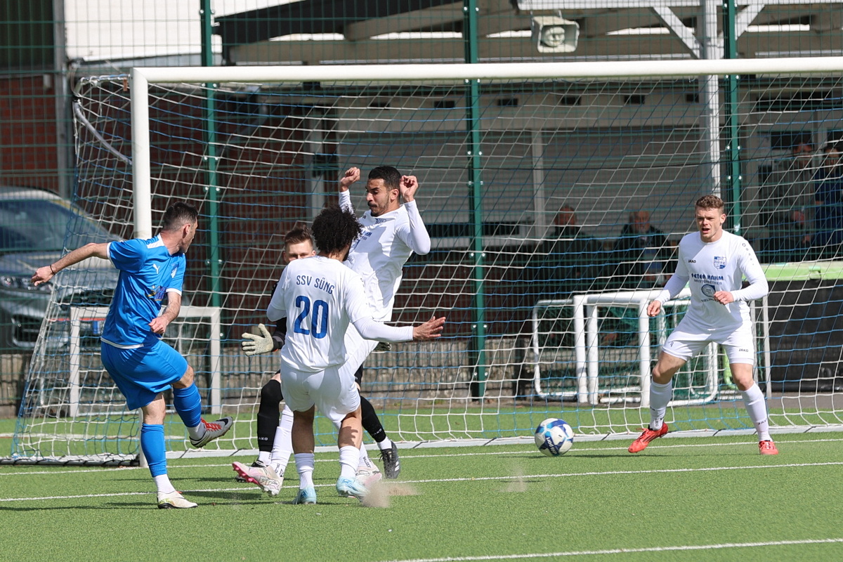 Es war ganz wichtig für uns mal wieder zu gewinnen“, freute sich Süngs Trainer Sergej Zimmerling über den ersten dreifachen Punktgewinn der Rückrunde. Dennis Tebelius sowie Goalgetter David Strauß brachten die Hausherren früh auf die Siegerstraße. Auf den Anschlusstreffer von Jerry Wagner gab Issa El Jomaa postwendend die Antwort. Auch nach der Pause ließ der SSV den Gästen nicht viel Luft, aber diese hielten auch dauerhaft dagegen. „Das war ein Spiel auf Augenhöhe. Ein typisches Kampfspiel, in dem wir die Chancen besser genutzt haben“, so der erleichterte Zimmerling.