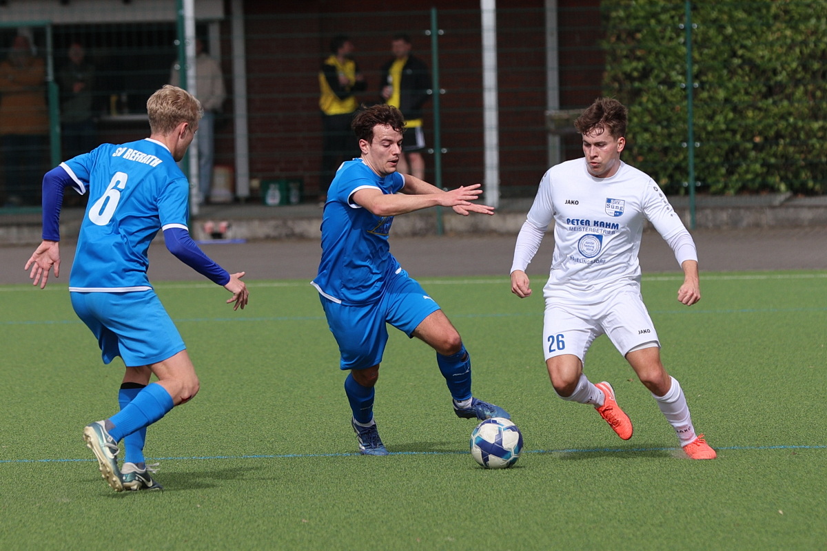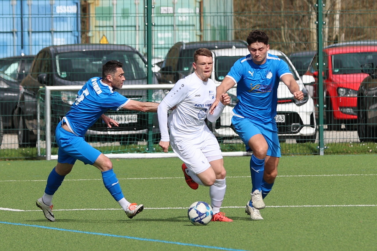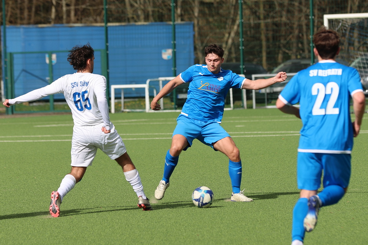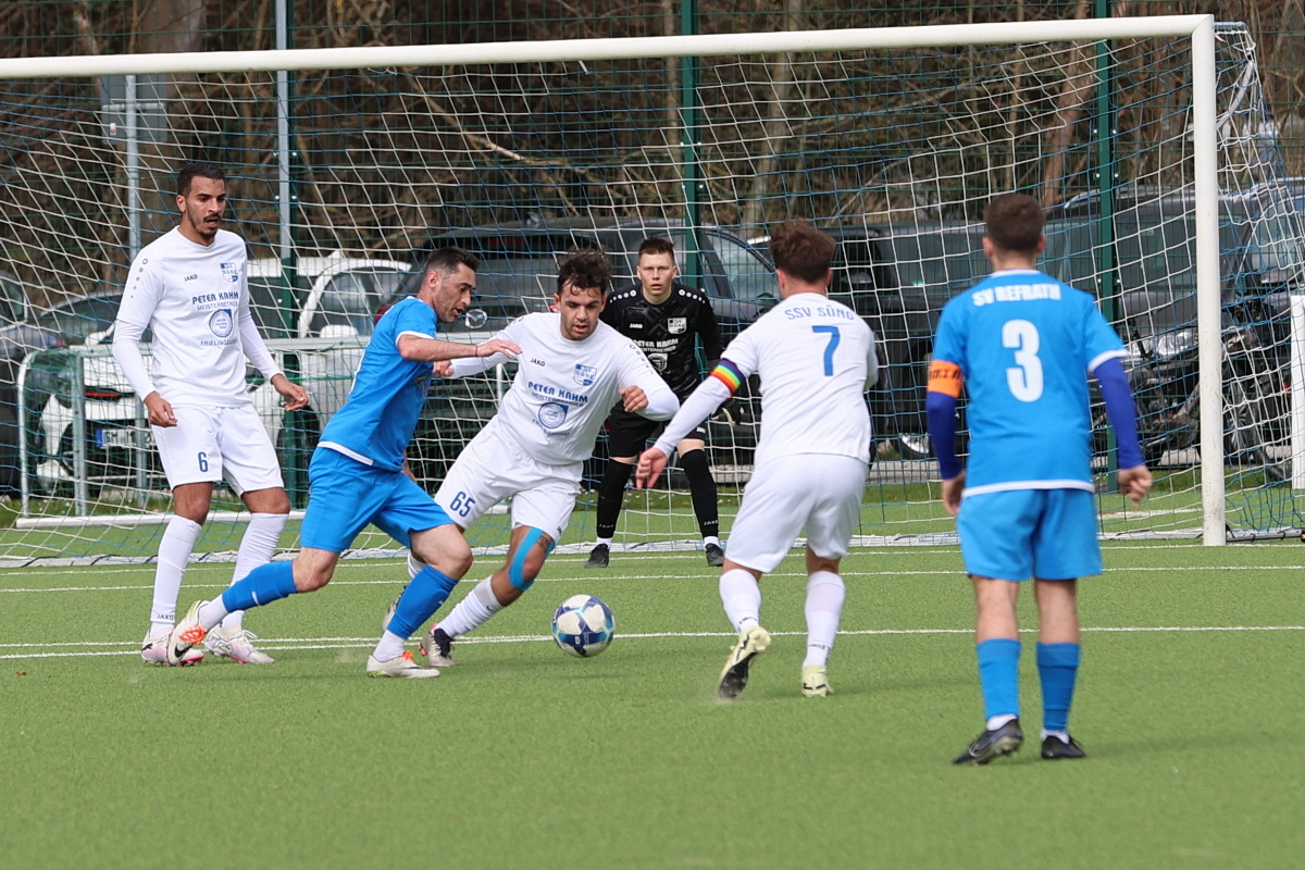 Florian Scharf und Igor Cholodenko hielten die „Blues“, für die nach der Pause Sefedin Gasi und Jannis Wehner trafen, auf Abstand. „Wir haben die wichtigen Zweikämpfe gewonnen, waren aber über die gesamte Spielzeit nicht dominant“, ächzte der SSV-Coach nach dem hart erkämpften Erfolg. „Wir haben leider nicht die richtigen Lösungen gefunden und müssen unsere guten Ansätze noch“, habe bei den Gästen laut Trainer Bernd Möldgen die letzte Konsequenz vor dem Tor gefehlt.