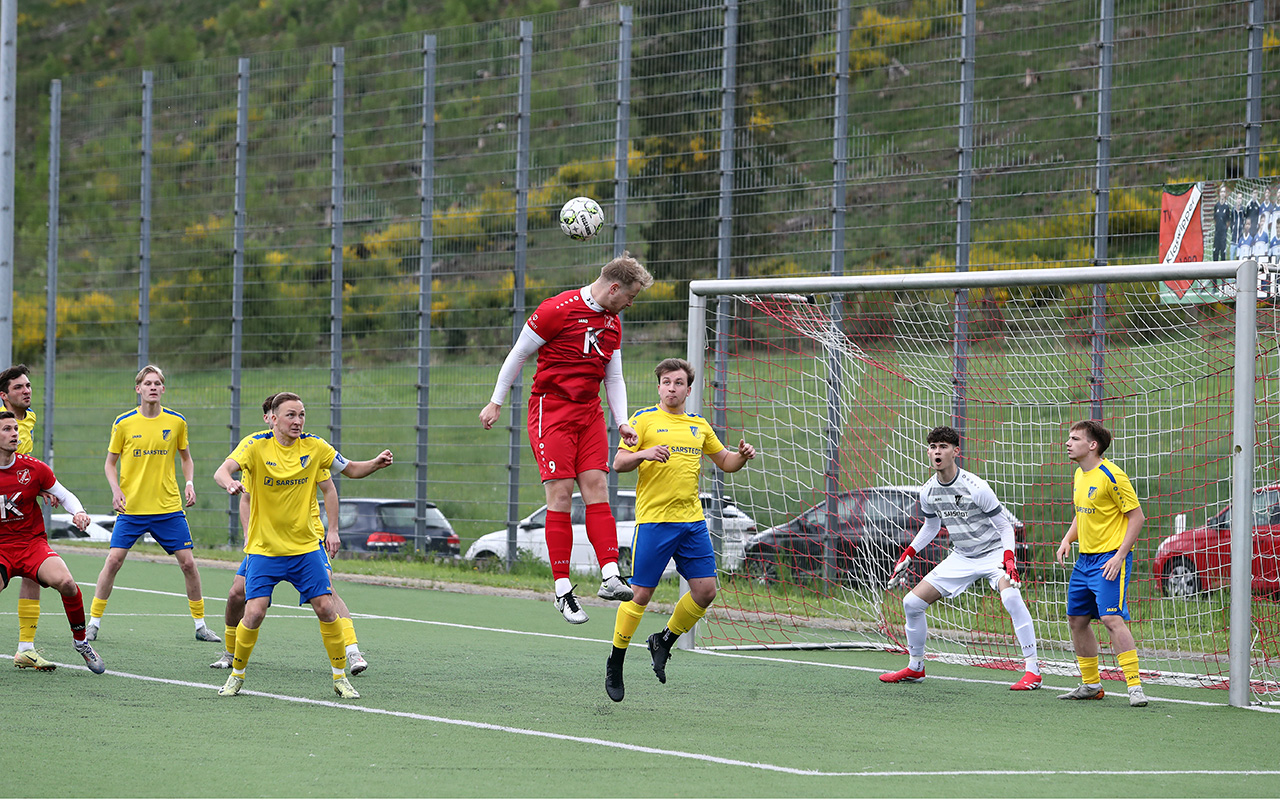 1:0 Justin Schwarz (3.), 1:1 Julian Birk (8.), 1:2 Leon Henseleit (35. Foulelfmeter), 2:2 Pascal Thiemt (76.), 3:2 Pascal Thiemt (84.).