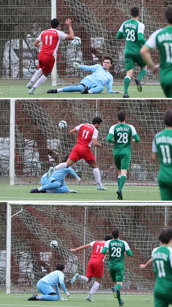 Julian Dewald hatte den Torreigen eröffnet, ehe innerhalb von vier Minuten gleich drei Treffer fielen. Erst erzielte Tom Gärtner zum 1:1, ehe Raul Yorganci die Gastgeber wieder in Führung brachte. Dann besorgte Bröltals spielender Co-Trainer Bastian Sellau vom Punkt den neuerlichen Ausgleich. Das 2:3 markierte schließlich Niklas Ott kurz vor der Pause. Zehn Minuten nach dem Wechsel stellte Dewald den Endstand her. Im Anschluss standen Bröltals Torhüter Joshua Hassel und VfR-Keeper Phil Schmidt mit einigen Paraden im Mittelpunkt. Letztlich blieb es bei der Punkteteilung.