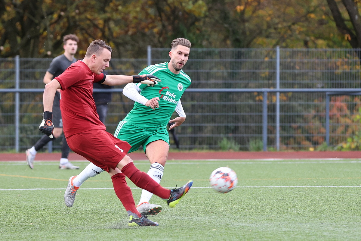 Bereits nach 40 Sekunden hatte der TuS-Anhang der Torjubel auf den Lippen, allerdings scheiterte TuS-Angreifer Maurice Nguyen aus kurzer Distanz an SVE-Keeper Dustin Bäcker. Das war zugleich die letzte klare Chance für die nächste halbe Stunde, in der sich die Titelkonkurrenten aus der Gemeinde Lindlar vor gut 400 Zuschauern einen jederzeit giftigen Fight lieferten. Dann setzte sich Gian Luca Wester auf der rechten Seite durch und bediente Knipser Nguyen, der zur Führung traf.