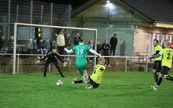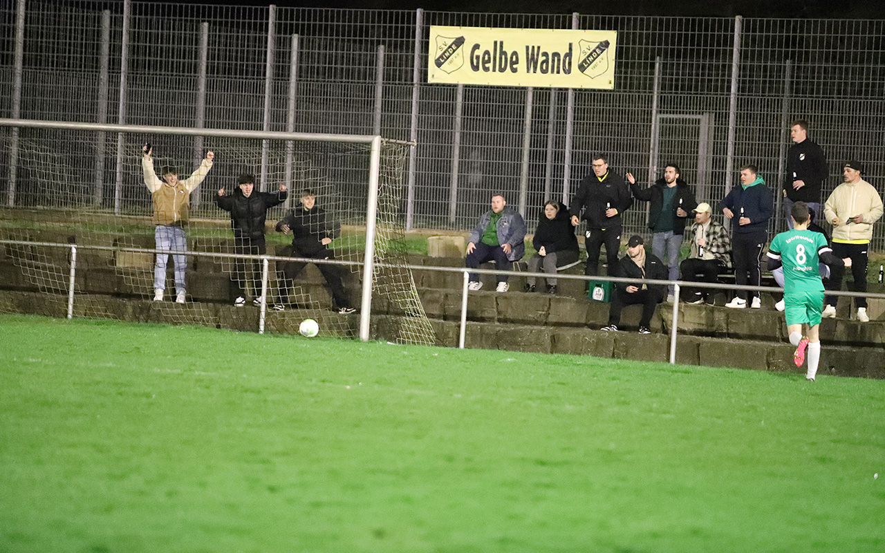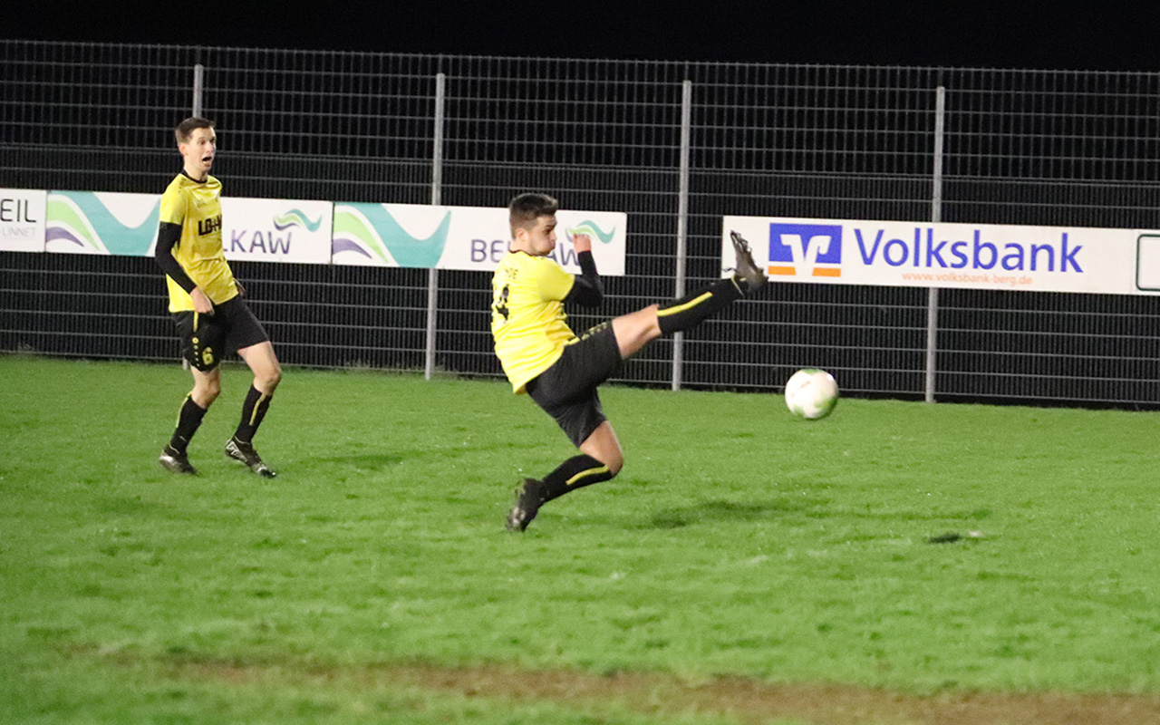 Gegen den Primus zeigten die Lindlarer eine starke Leistung und verbuchten in der zweiten Halbzeit noch einen Zähler. Tobias Mibis traf in der 84. Minute zum Anschluss und Joscha Röttgen verwandelte mit dem Schlusspfiff einen Elfmeter zum 3:3. Eine blitzsaubere Vorstellung lieferte im Kasten der Gastgeber der mittlerweile 42-jährige Marco Buchholz ab. „Wir haben uns den Punkt mehr als verdient und hatten auch noch eine Reihe guter Chancen“, erklärte TuS-Coach Joey Ebert.
