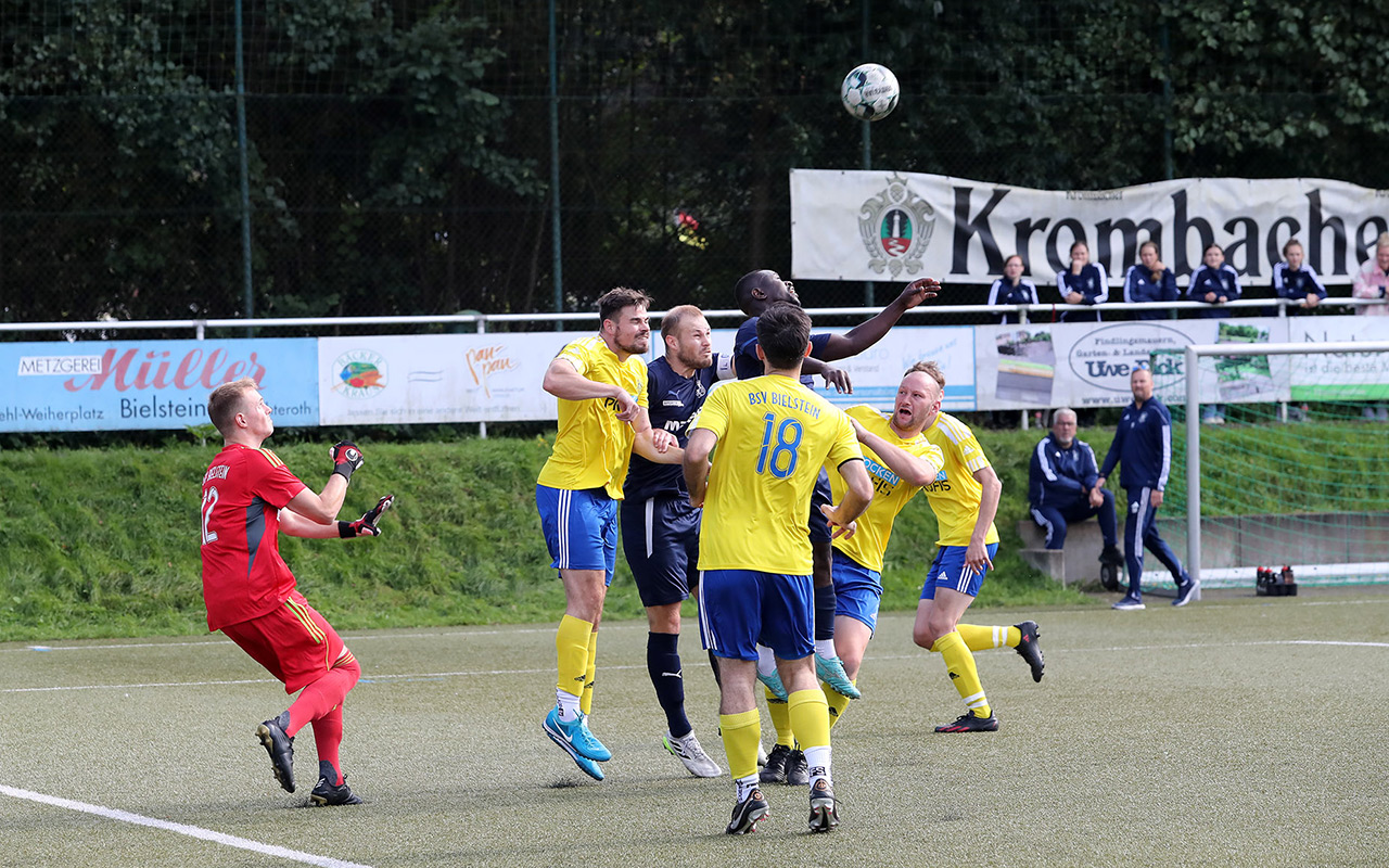 Das mit Spannung erwartete Lokalderby konnte Bielstein deutlich für sich entscheiden. Bastian Buik legte mit zwei Toren die Basis für den BSV-Erfolg. Den Führungstreffer erzielte er per Kopf nach einem Eckball, sein zweiter Strich gab den Hausherren zusätzliche Sicherheit. In den Schlussminuten beseitigten Leandro Del Giudice und Fabian Klöckner die letzten Zweifel am Sieg der Bierdörfler.