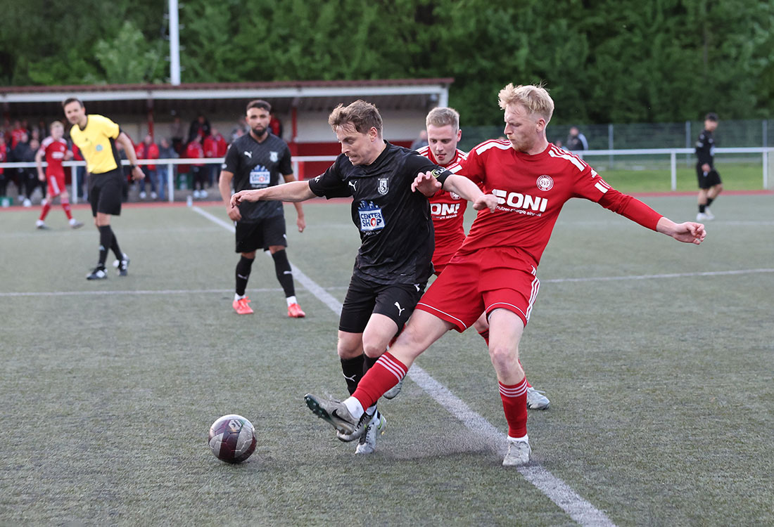 Der SVF spielte zwar ordentlich mit, war aber am Ende chancenlos. Der personelle Aderlass unter der Woche, gleich vier Stammkräfte standen zusätzlich nicht zur Verfügung, war einfach zu groß. Fünf Minuten vor der Pause mussten dann auch noch Niklas Yegin und Etienne Parmentier die weiße Fahne hissen. „Wir haben bis dahin eigentlich ganz gut mitgespielt. Es war eine sehr intensiv geführte Partie, aber es gab kaum Torchancen auf beiden Seiten“, so der Frielingsdorfer Coach Christoph Liehn.