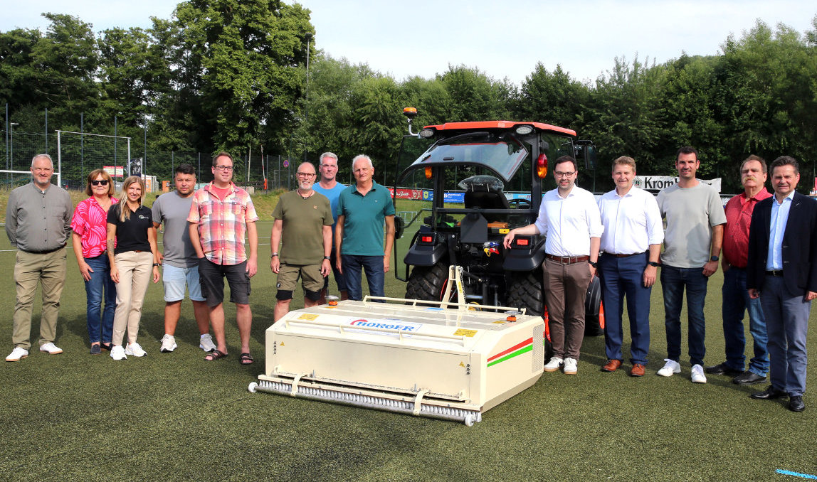 Den kleinen Trecker vor dem Gerät hatte die Firma Buchen GmbH Landtechnik aus Wenden zur Verfügung gestellt. Am Steuer saß Andreas Schemmel vom gleichnamigen Wiehler Gartenbaubetrieb. Er steht auch den Vereinen zur Verfügung, um mit der Maschine die Plätze zu reinigen. Der Stadtsportverband plant, einen eigenen Trecker anzuschaffen – somit steht den Vereinen künftig ein kostenloses Gesamtpaket aus Trecker und Reinigungsmaschine zur Verfügung.