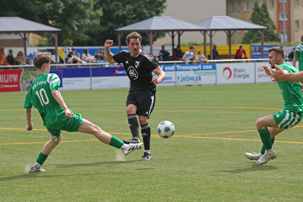 Keine zehn Minuten waren gespielt, da nutzte der Gastgeber einen Wiehler Ballverlust eiskalt zur Führung durch Florian Hensel. „Wir waren die ersten zehn Minuten gut im Spiel. Aber es ist typisch für uns, dass der Gegner mit der ersten Aktion das Tor macht. Unser Matchplan war damit dahin“, kommentierte Mühlmann die Auftaktphase. Anschließend kontrollierten die Flittarder das Spiel weitgehend, schafften es aber zunächst nicht, nachzulegen. Eine Doppelchance von Niklas Uhl und Hensel vereitelte Wiehls Keeper Maximilian Vollmer glänzend (25.). Eine Ecke von Florian Liebelt brachte dann den Ausgleich für die Gäste. Rene Gailowitz ging ins Kopfballduell mit Henoc Muamba, der den Ball selbst in die Maschen beförderte (35.). Kurz vor der Pause kassierte Wiehl nach einem Ballverlust jedoch das 1:2, erneut durch Hensel.