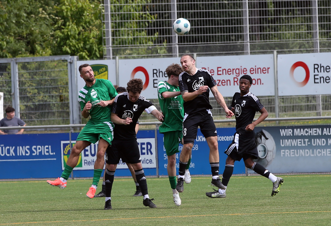 [Nach einer Ecke gewinnt Flittards Henoc Muamba zwar das Duell gegen Wiehls Rene Gailowitz, köpft den Ball aber zum 1:1-Ausgleich ins eigene Tor.]