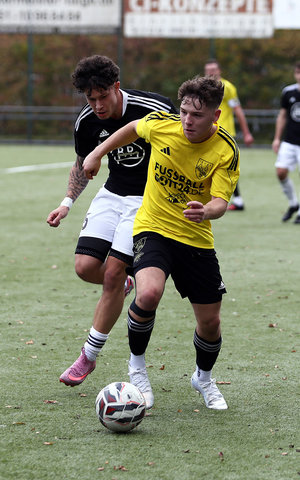 [Wiehls Jordy Schurzmann im Zweikampf mit dem Marialindener Luke Roggendorf.]