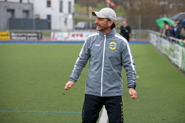 [Hohkeppels Trainer Giuseppe Brunetto hatte nach zwei Roten Karten gegen seine Elf allen Grund zur Anspannung (oben). SSV-Coach Marcus Voike nahm die Situation gerne an.]
