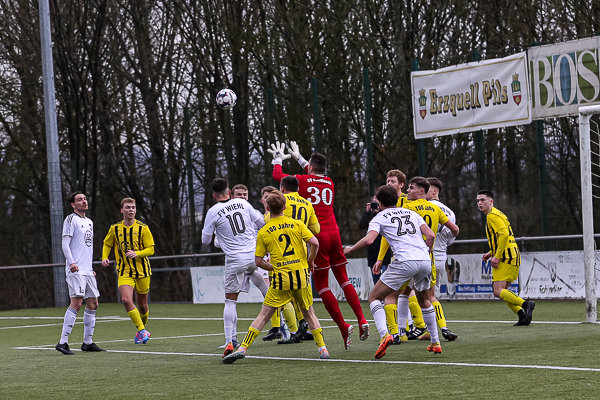 „Die Mannschaft hat in der zweiten Halbzeit eine sehr gute Reaktion gezeigt und kämpferisch wie spielerisch voll überzeugt“, erklärte der Trainer. Beide Teams lauerten zu Beginn auf Umschaltaktionen und Konter, die Führung der Gäste resultierte jedoch aus einer Ecke. Der zunächst abgewehrte Ball landete bei Dennis Reeke, der aus der zweiten Reihe einnetzte. „Danach hatten wir zehn bis 15 schwächere Minuten und in ein, zwei Situationen auch ein bisschen Glück“, berichtete Görgens.