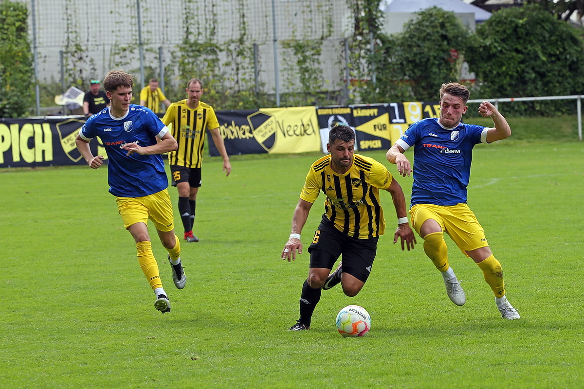 Die Spicher kamen mit Wut aus der Kabine und setzten den SSV sofort unter Druck. Gleich zweimal musste Tom Geßner im Nümbrechter Tor nach Ecken in höchster Not retten. „Die ersten sechs oder sieben Minuten hatte ich Sorge, dass das Spiel kippen könnte“, sagte Reisewitz, dessen Sorge von Felix Sievers endgültig zerstreut wurde. Erneut war es ein langer Diagonalball, diesmal auf Dean-Robin Paes, der für den Dreifachtorschützen perfekt verlängerte (67.). Marvin Hennecken schickte schließlich Julian Opitz auf die Reise, der nur noch auf Niklas Clemens querlegen musste und es stand 0:4 (74.). Das 1:4 durch den eingewechselten Rayen Hakimi (84.) blieb lediglich ein Schönheitsfleck.