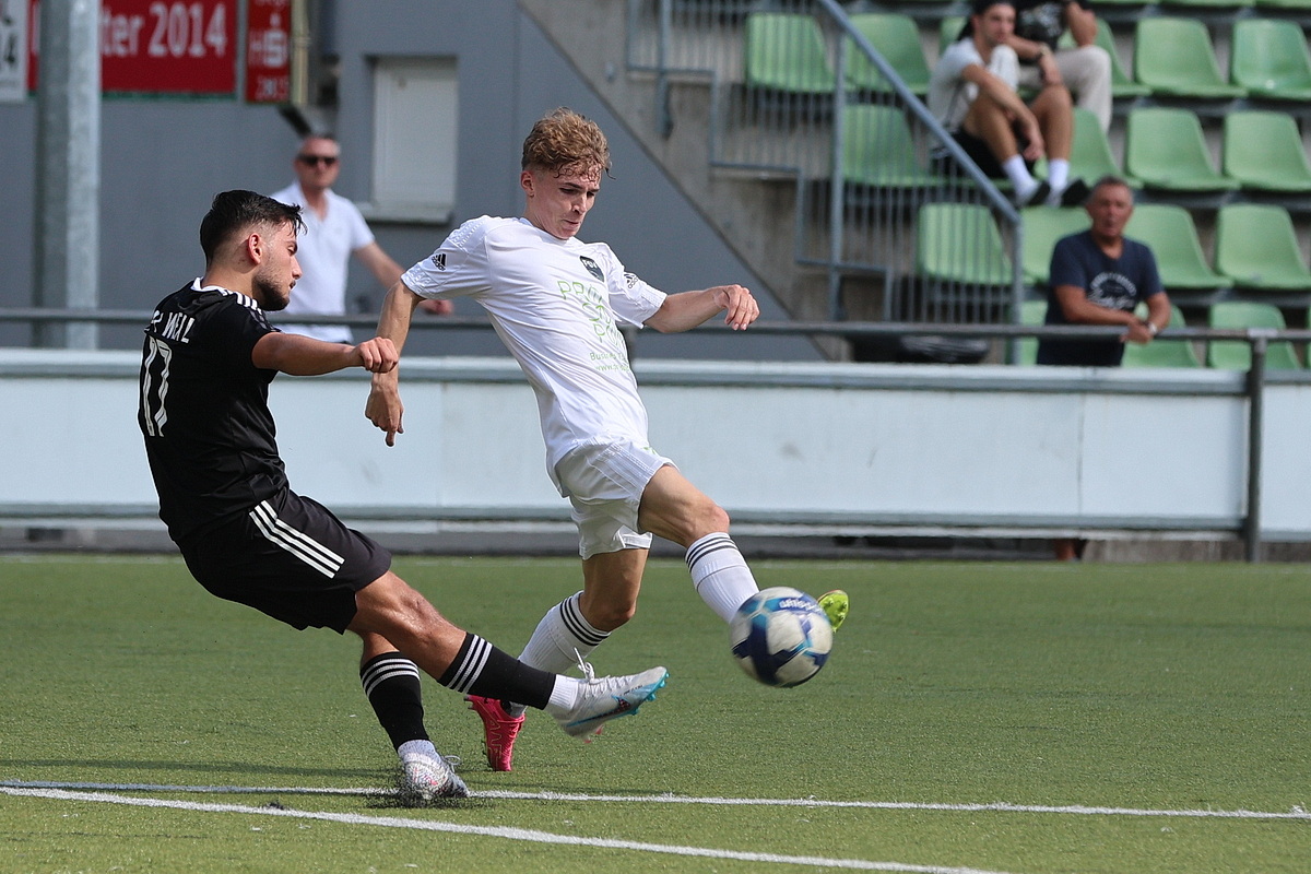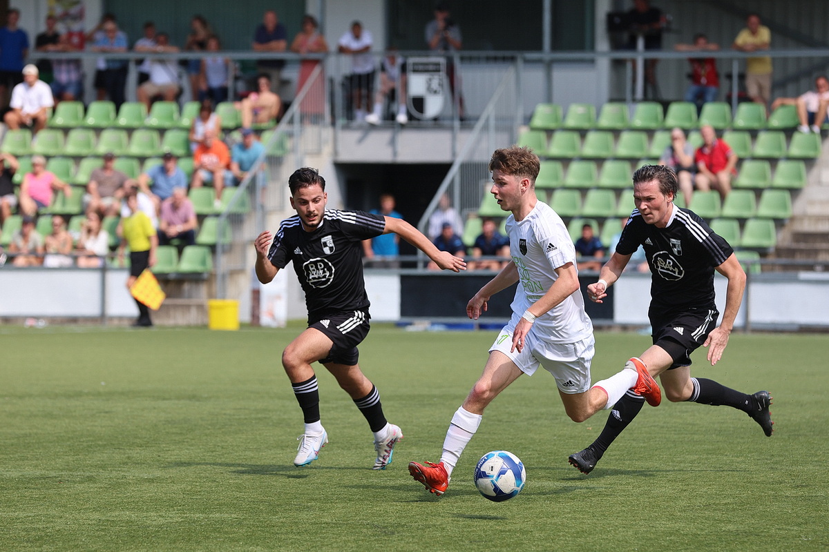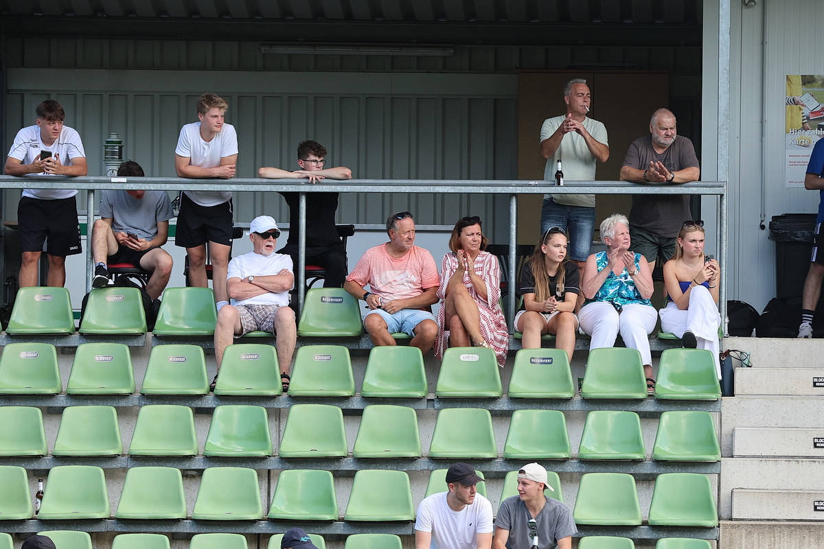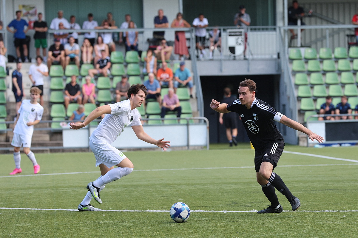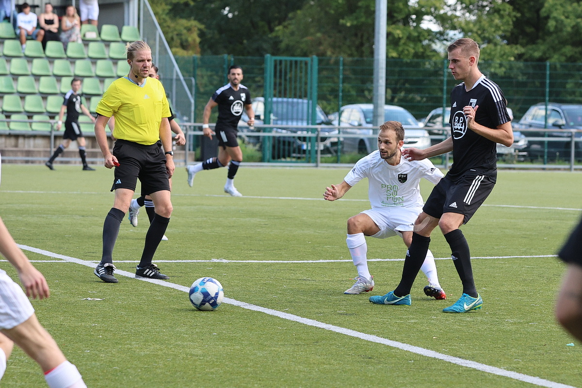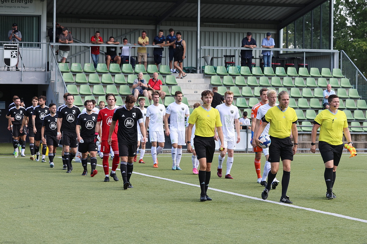 Nach rund einer halben Stunde gingen die Gäste per Doppelschlag in Führung. Nach einer Ecke verloren die Hausherren das Kopfballduell und Felix Adamietz beförderte den Ball unglücklich ins eigene Netz (27.). Beim 0:2 verlor Philipp Rüttgers das Laufduell mit seinem Gegenspieler, der den Ball mit Beteiligung des Innenpfostens in die Maschen schoss (30.). „Wir haben von der ersten Minute an extrem unter Druck gestanden. Wir konnten froh sein, dass es nur 0:2 zur Pause stand“, meinte Reisewitz, der mit Dean-Robin Paes und Robin Brummenbaum zwei frische Offensivkräfte für die zweite Halbzeit aufbot. Und der Top-Torjäger Brummenbaum, frisch aus dem Urlaub zurück, funktionierte sofort und stellte mit seiner ersten Ballaktion den Anschluss her (50.).