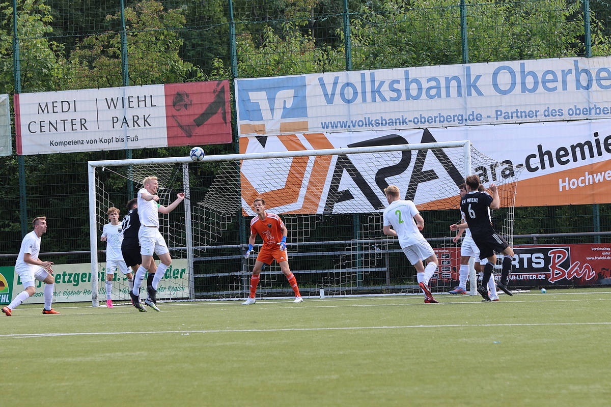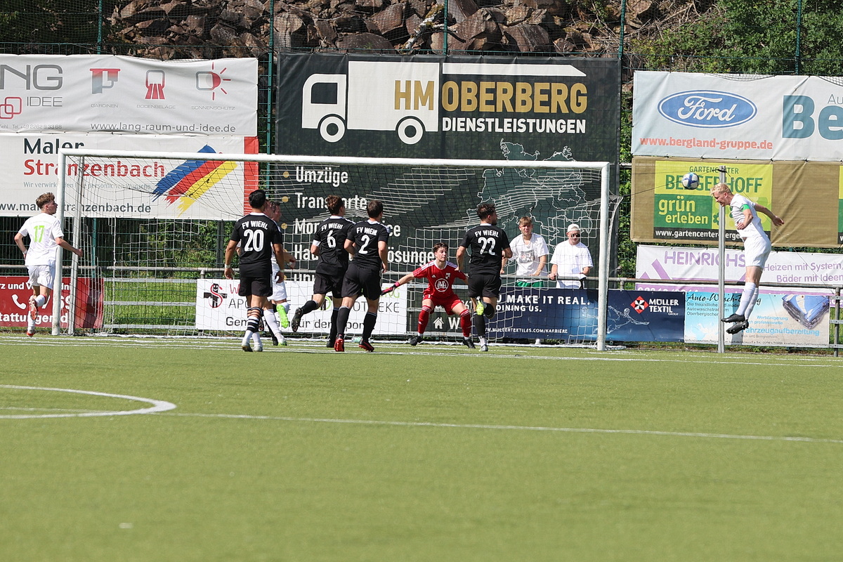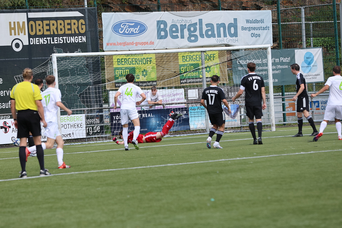 „Das war krass“, meinte Wiehls Trainer nach dem ersten Heimspiel seiner Mannschaft. „Ich bin mit dem Spiel noch nicht ganz durch. Sowas habe ich noch nie erlebt in meiner Karriere“, erklärte der Coach nach dem Schützenfest. Die Spieler waren kaum auf dem Feld, da klingelte es bereits im Tor der Hausherren. Nach einem langen Einwurf schliefen die Wiehler offenbar noch tief und fest, Christoph Mai bedankte sich und hämmerte den Ball ins kurze Eck (2.).