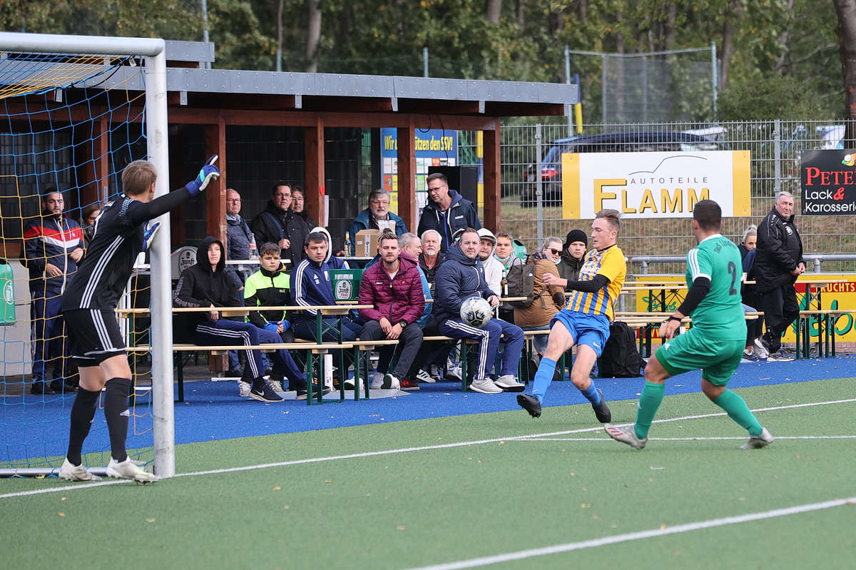 [TuS-Keeper Timo Braun ist beim 2:4 durch Julian Lindenau chancenlos.]
