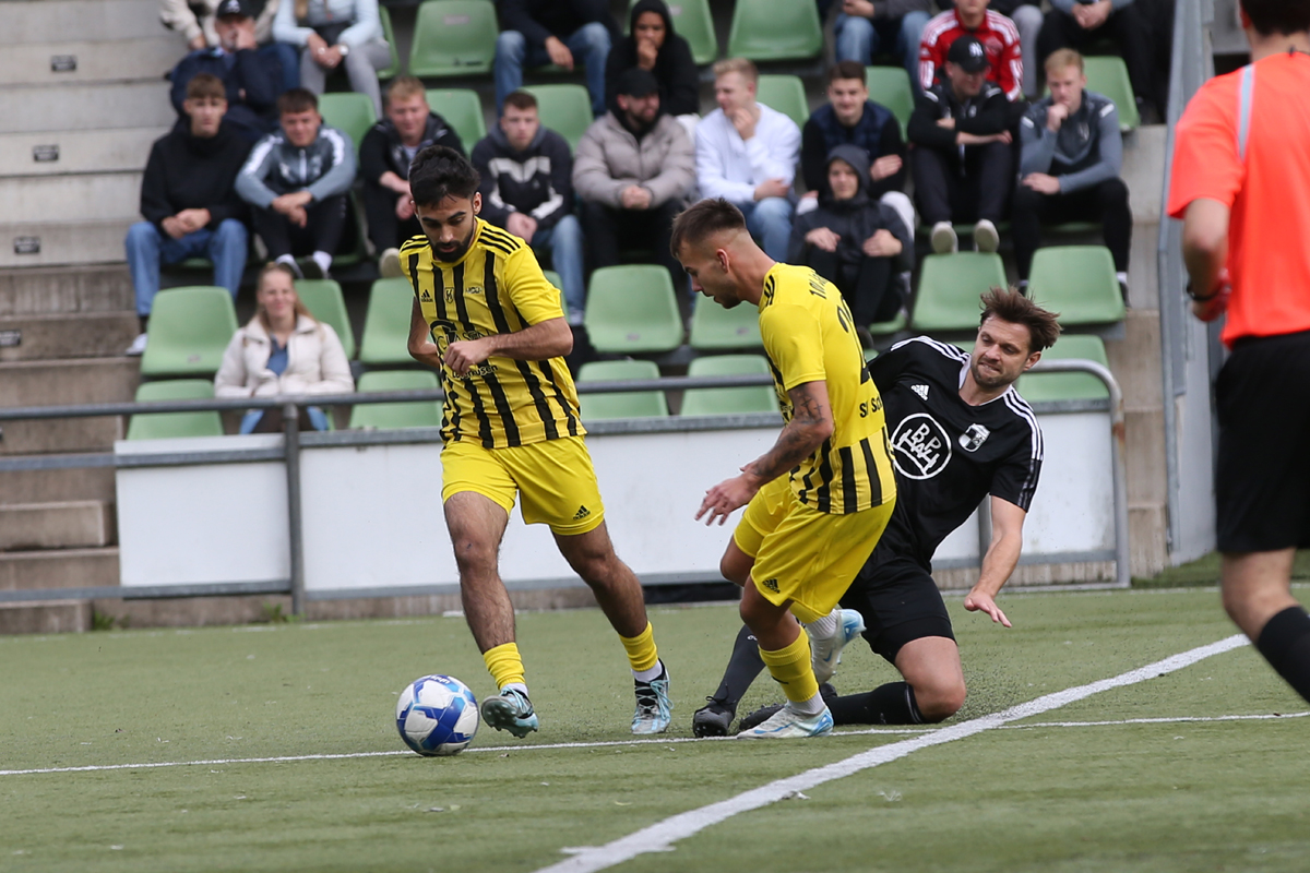 Der erste Durchgang ist schnell erzählt, denn nennenswerte Momente waren rar gesät. Meist wanderte der Ball zwischen den beiden Sechzehnern hin und her, Torgefahr blieb zunächst aus. „Man hatte den Eindruck, dass beide Mannschaften denselben Matchplan hatten. Nämlich nicht zu viel Risiko einzugehen“, so Mühlmann, dessen Elf gegen Ende des ersten Durchgangs aber durchaus die Möglichkeit hatte, in Führung zu gehen. Louis Usko schoss in Minute 39 einen Freistoß aus rund 30 Metern an den Außenpfosten und bereitete nur zwei Minuten später die Großchance von Andi Sadrija vor, der jedoch an Schlebuschs Torwart Justus Hilbers scheiterte. Im Gegenzug prüfte Schlebuschs Noah Gonschior FV-Keeper Maximilian Vollmer mit einem Versuch aus 20 Metern (41.).