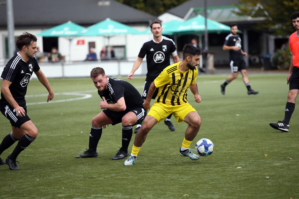 Nümbrechts Trainer Torsten Reisewitz hatte es erwartet: „Beide Mannschaften haben versucht, offensiv zu spielen und den Gegner zu pressen“, meinte er nach der Begegnung mit dem zuletzt stark aufgetretenen Aufsteiger aus Köln. Das Ergebnis war, es gab nur wenige Torszenen, allerdings einen Schockmoment für die Nümbrechter: Das Gäste-Brüderpaar Hendrik und Philipp Graf, erfolgreichstes Torjägerduo der vergangenen Bezirksligaspielzeit und auch in der aktuellen Saison bereits treffsicher, kombinierte sich durch die SSV-Defensive, den Abschluss parierte Nümbrechts Torwart Julian Schoepe aber glänzend (15.).