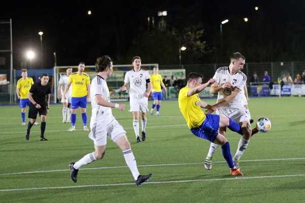 Festtagsstimmung auf der einen, Tristesse auf der anderen Seite: Der SSV Homburg-Nümbrecht feierte im Lokalschlager gegen den FV Wiehl einen deutlichen Sieg und reitet damit weiter auf der Erfolgswelle. In der Tabelle knackten die Blau-Gelben, die sich für die 0:1-Hinspielniederlage revanchierten, die 40-Punkte-Marke und rücken zumindest bis Sonntag auf den dritten Platz vor. Die Gäste hingegen müssen gegenüber dem Konkurrenten aus der Nachbarschaft weiter abreißen lassen und erlebten einen Abend zum Vergessen – weil der Gegner beinahe jeden Blackout in der Defensive bestrafte.