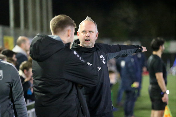 Sascha Mühlmann (Trainer FV Wiehl): Wir haben eine gute erste Halbzeit gespielt. Wir wussten, wie Nümbrecht spielt und hatten uns gut auf sie eingestellt. Wir haben ein Tor gemacht, was zu diesem Zeitpunkt verdient gewesen ist. Dann kriegen wir aber ein Sahnetor zum Ausgleich. Der geht entweder rein oder 100 Meter drüber. Ich glaube, dass wir auch in der zweiten Halbzeit nicht die schlechtere Mannschaft waren. Wenn Marvin Bollow das lange Eck anvisiert und der Ball geht rein, steht‘s 2:2. Wer weiß, wie das Spiel dann läuft. Aber das war im Hinspiel ähnlich, da hatte Nümbrecht zwei große Chancen, die sich nicht machen, und es geht 1:0 für uns aus. Es sind vielleicht zwei Tore zu viel, aber aufgrund der Chancen in der zweiten Halbzeit hat Nümbrecht verdient gewonnen. In der zweiten Halbzeit sind wir nicht mehr so in die Zweikämpfe gekommen und Nümbrecht hat weitergemacht mit seinen langen Bällen. Wir haben es nicht mehr geschafft, so gut übers Mittelfeld zu spielen wie in der ersten Halbzeit. Aber was Leidenschaft und das Kämpferische angeht, kann ich meiner Mannschaft nichts vorwerfen. Wir haben alles versucht und können mit der Niederlage umgehen. Es wird nächste Saison wieder zwei Derbys geben.
