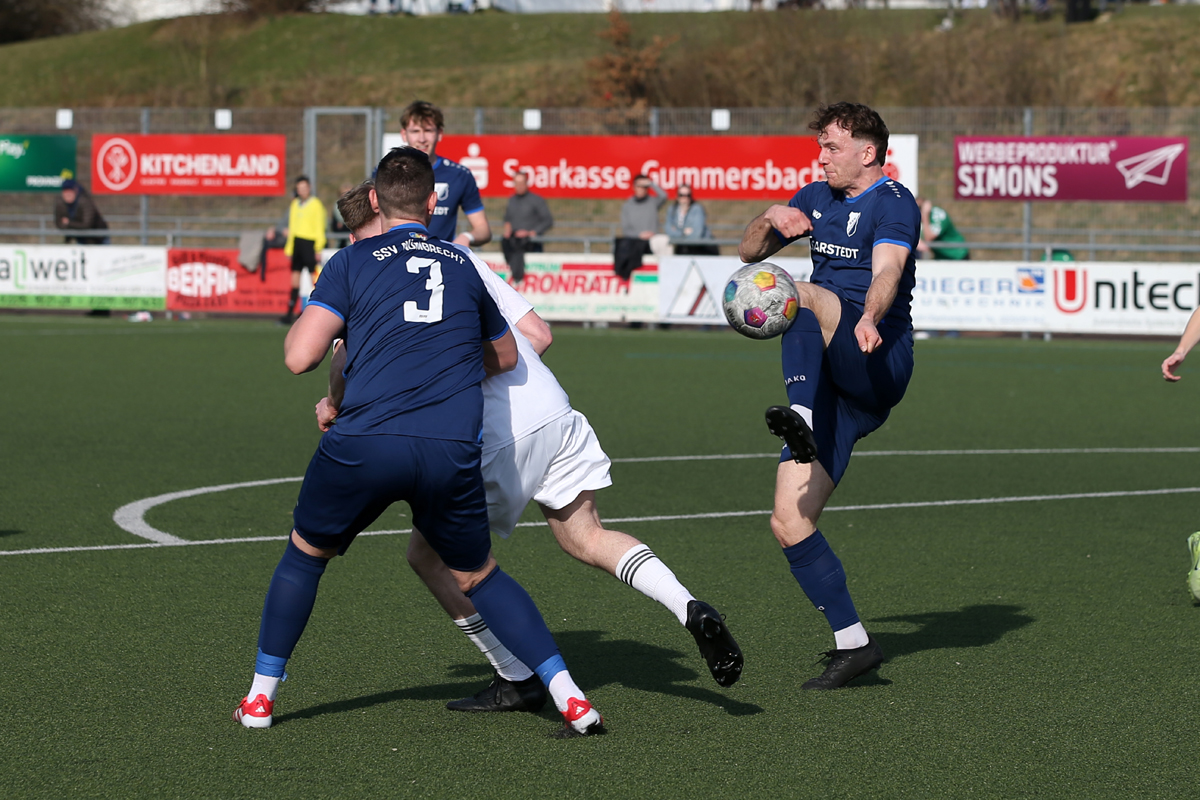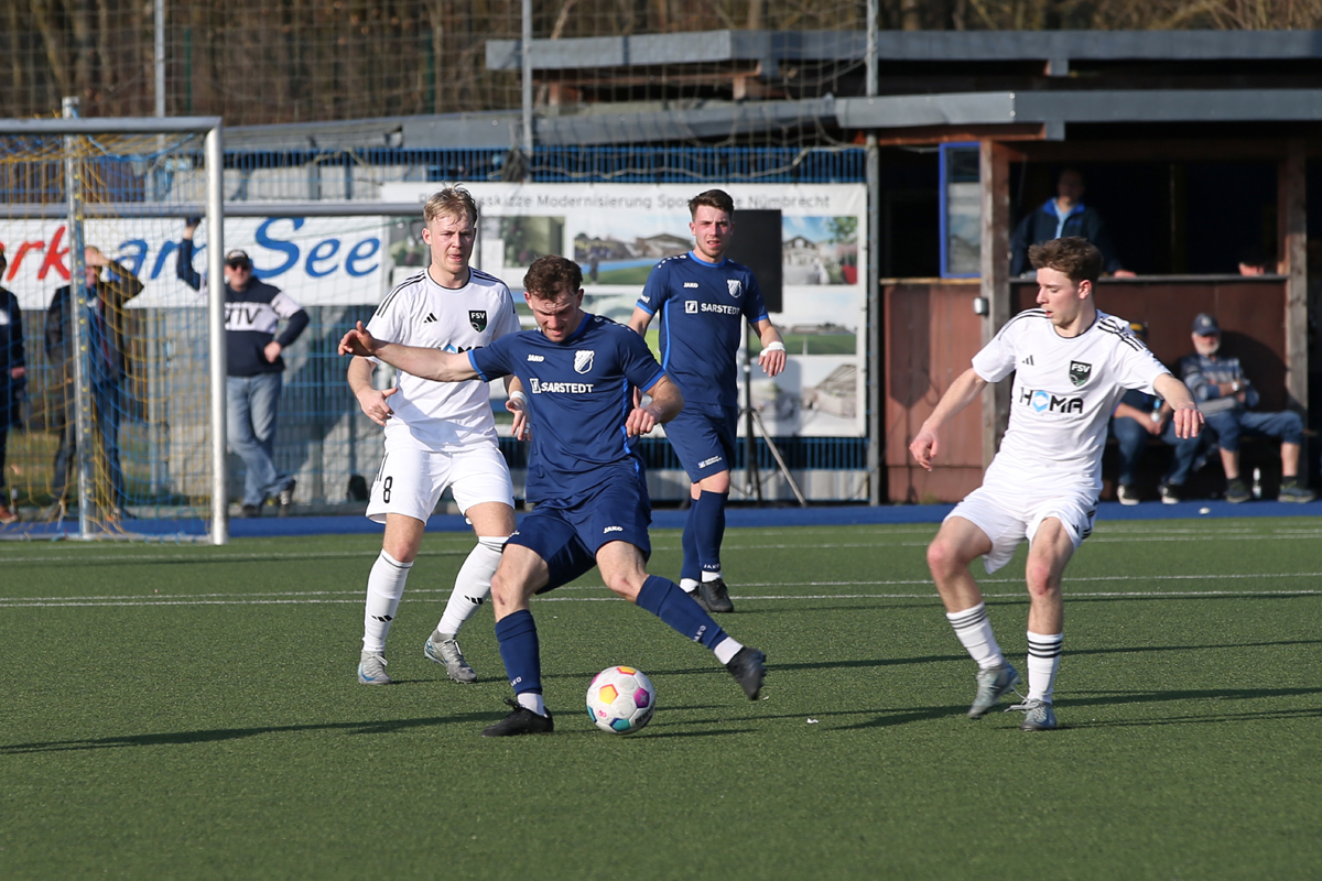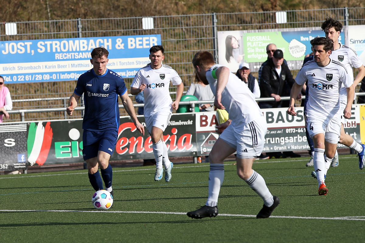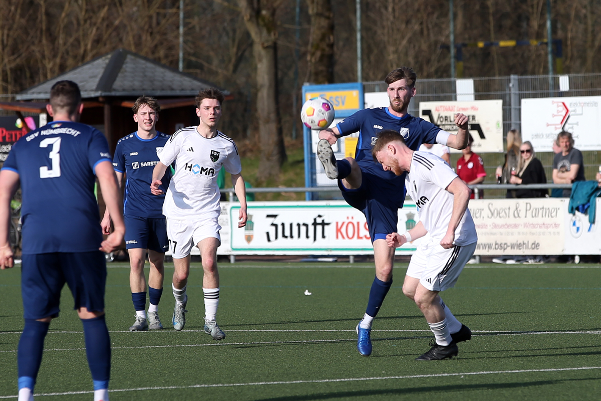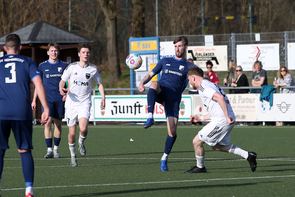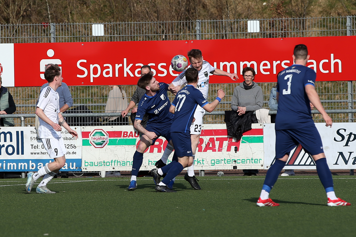 Schon wieder erleben die Nümbrechter gegen den FSV einen bitteren Auftakt. War es bei der Saisonpremiere noch ein unglückliches 0:4, kassierte die Equipe von Trainer Torsten Reisewitz beim heutigen Rückrundenstart in der Nachspielzeit den Gegentreffer zum Ausgleich. „Über 90 Minuten gesehen, geht das Ergebnis völlig in Ordnung. Aber es tut weh, wenn es so endet. Ich bin maximal enttäuscht“, meinte Reisewitz und ärgerte sich über die vergebene Chance, den Konkurrenten um Platz eins in der Tabelle zu überflügeln. Ligaprimus SSV Bornheim verlor im Parallelspiel beim Aufsteiger TuS Marialinden mit 2:3.