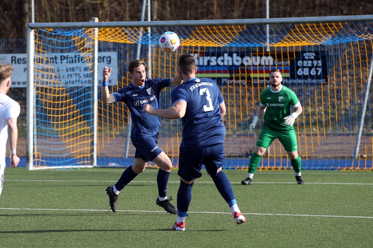 Auch nach dem Seitenwechsel ergab sich kein Chancenfeuerwerk. Robin Brummenbaum hatte noch die beste Gelegenheit, zielte aber ein wenig zu hoch (66.). Auf der Gegenseite stand erneut Schoepe im Fokus, der nach einem steil gespielten Ball im letzten Moment klärte (70.). Der Nackenschlag folgte nach einer Ecke: Jonas Neumann stand in der Box ziemlich unbedrängt und köpfte das Rund zum 1:1 in die Maschen. Nach dem Ausgleich formierte sich um den ausgelassenen Jubel der Gäste eine Rudelbildung, in deren Rahmen Nümbrechts Felix Klein offenbar wegen einer Beleidigung die Rote Karte sah. Die Gemüter beruhigten sich jedoch schnell wieder.