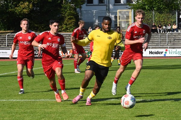 [Hohkeppels Joel Vieting ist auf der Jagd nach Eintrachts Ex-Spieler Ardit Mimini.]