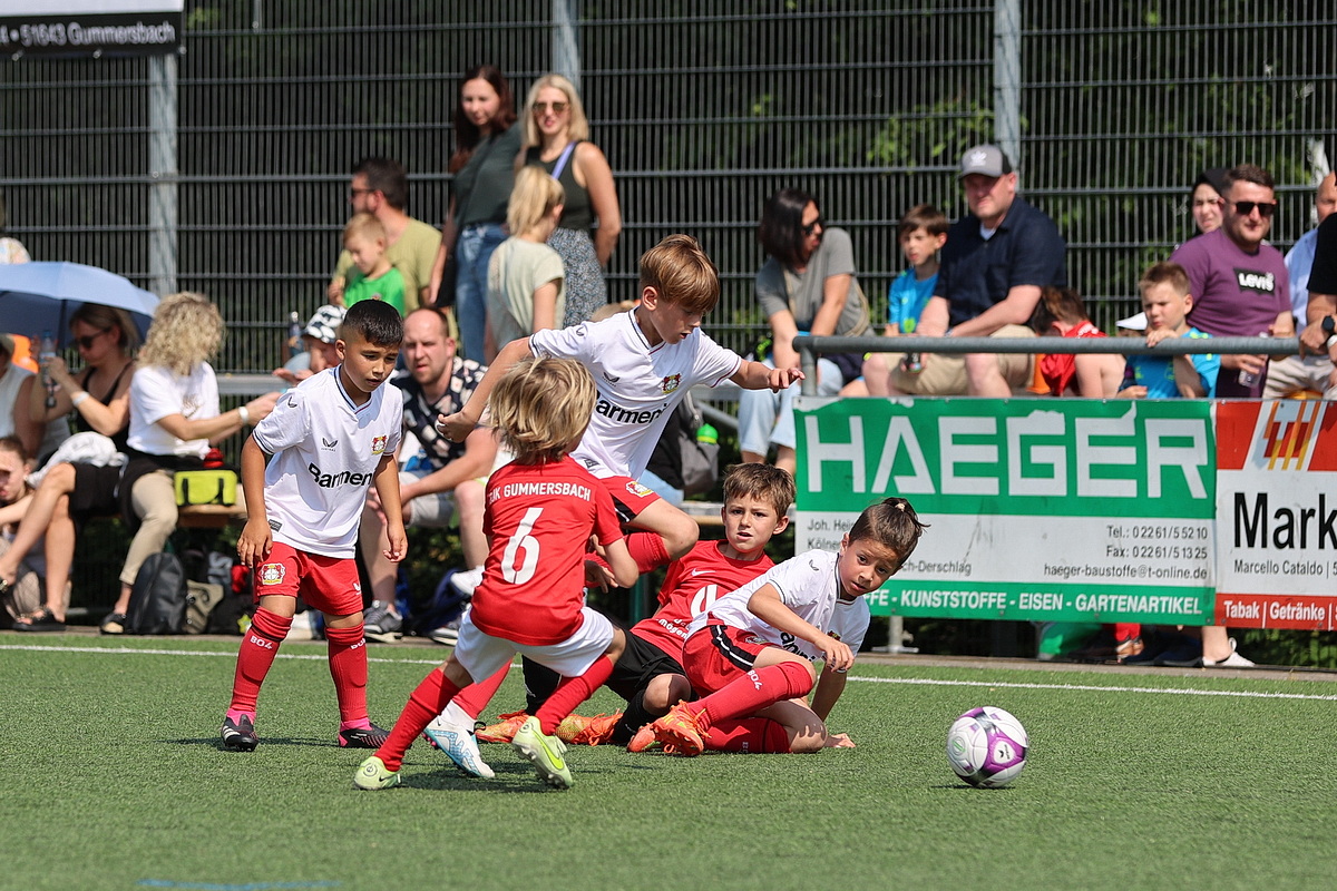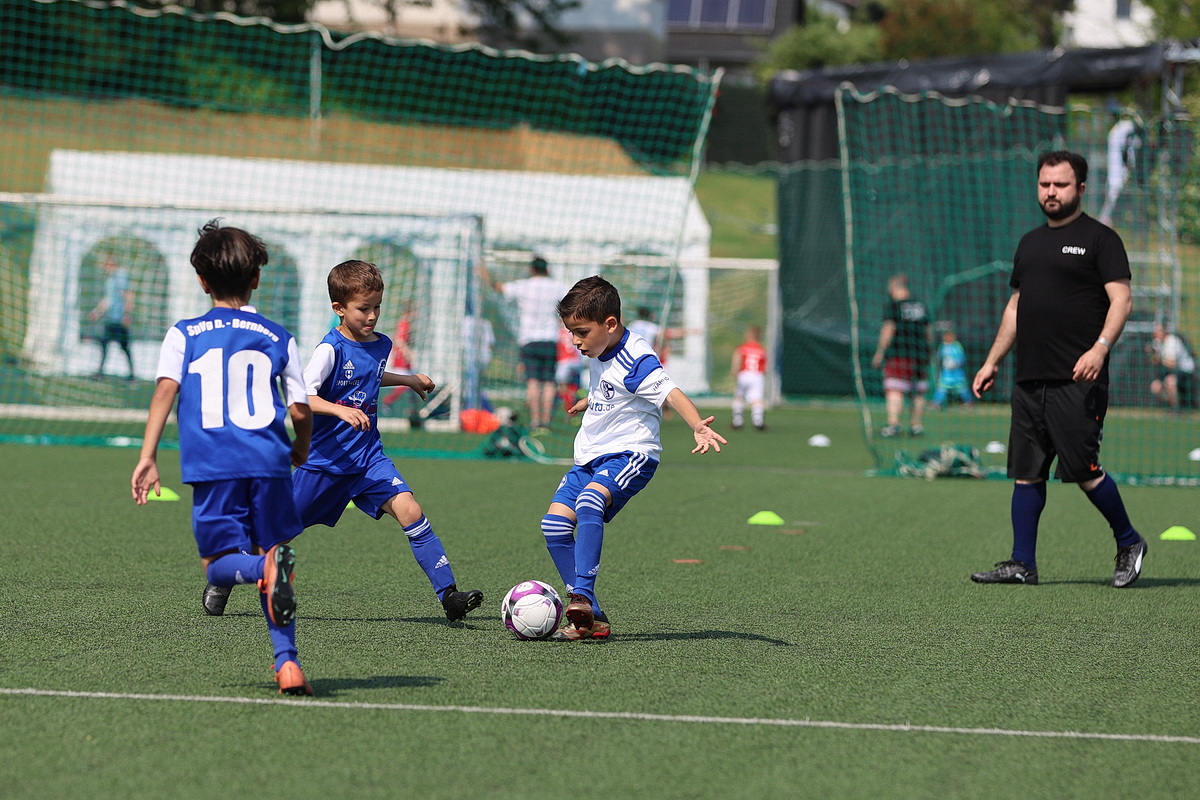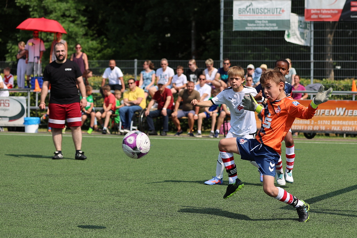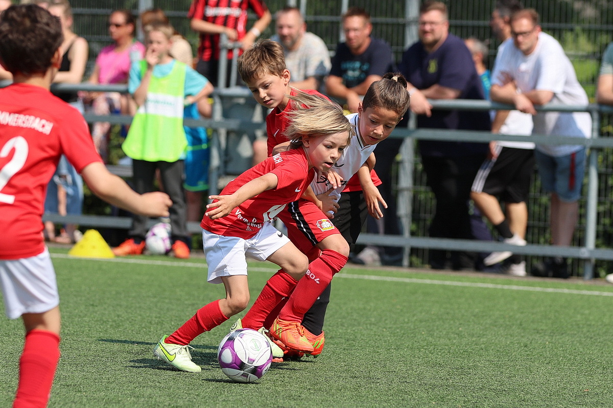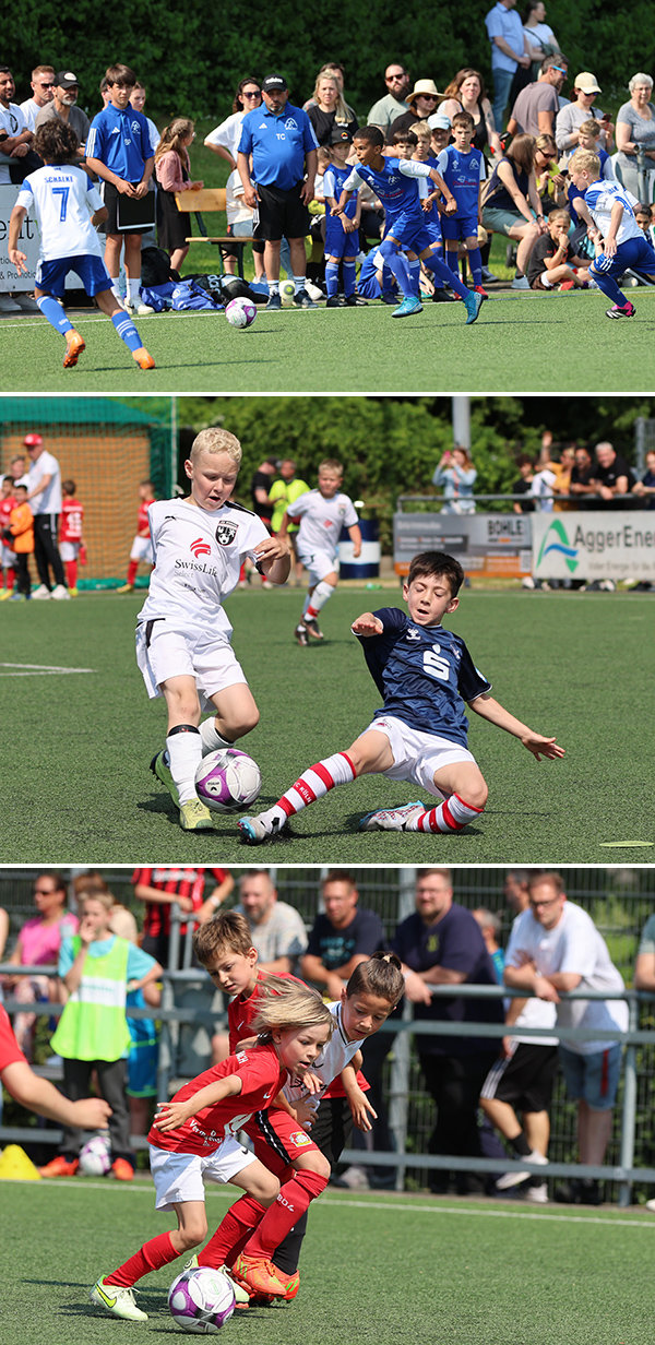 [Impressionen von den U8-Spielen Dümmlinghausen-Bernberg gegen Schalke, 1. FC Köln gegen JSG Wiehltal und DJK Gummersbach gegen Bayer 04 Leverkusen (von oben nach unten).]