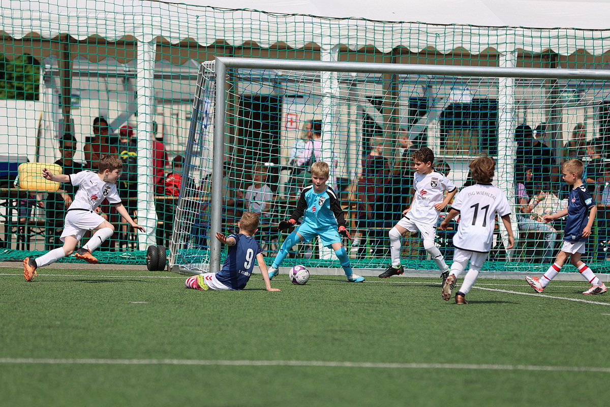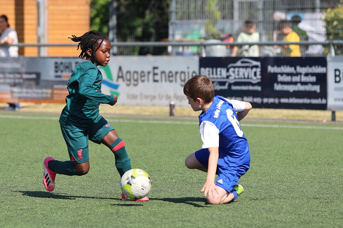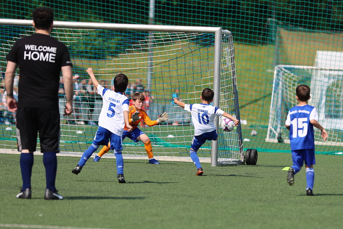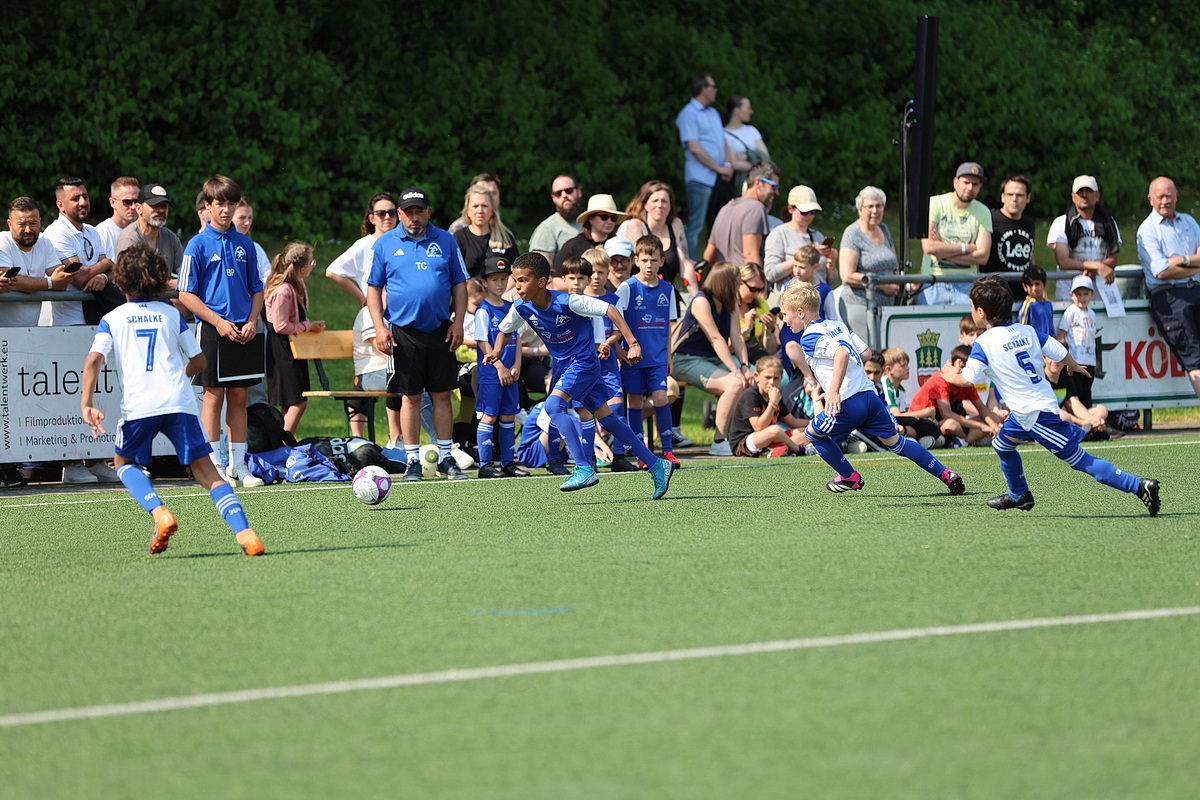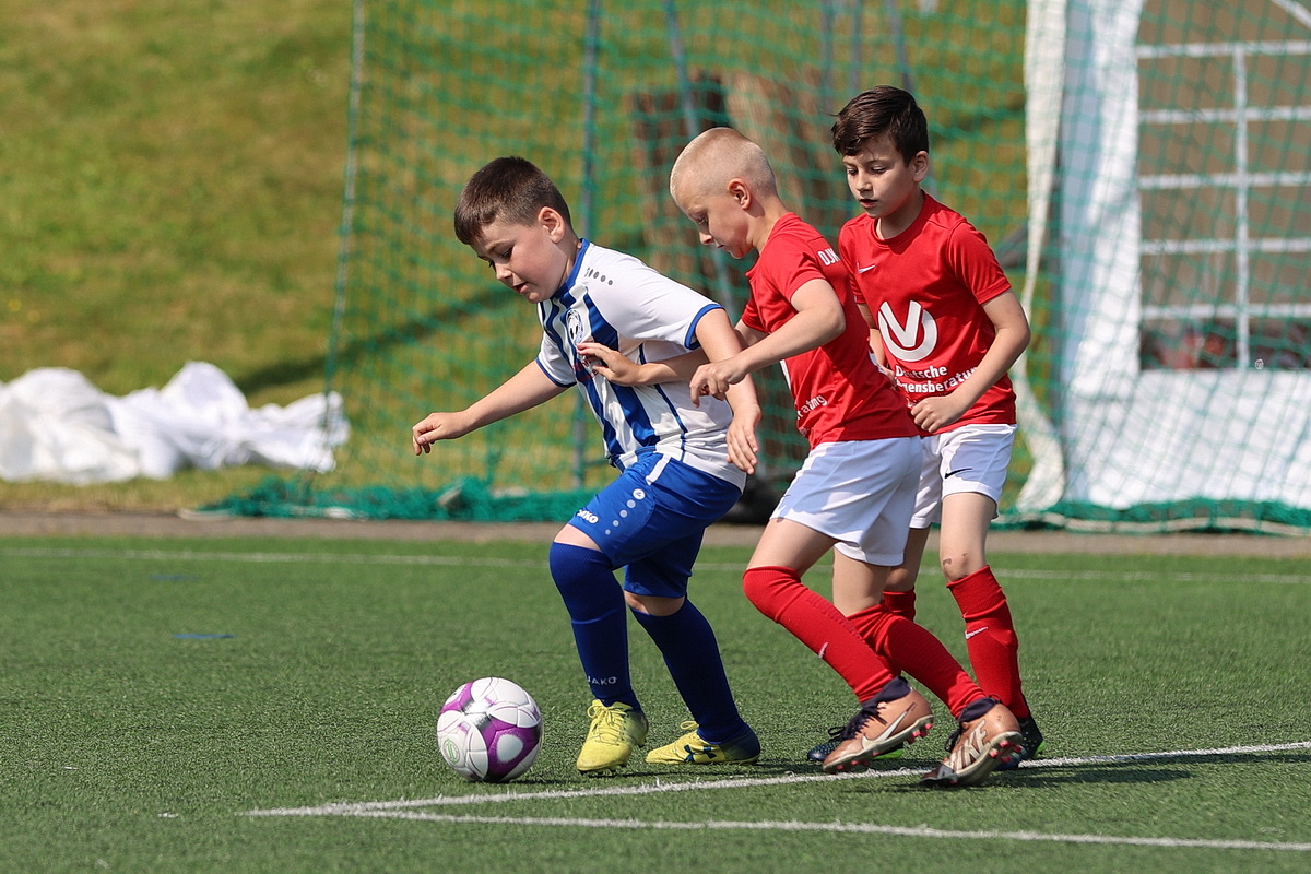 [Impressionen von den U8-Spielen Dümmlinghausen-Bernberg gegen Schalke, 1. FC Köln gegen JSG Wiehltal und DJK Gummersbach gegen Bayer 04 Leverkusen (von oben nach unten).]