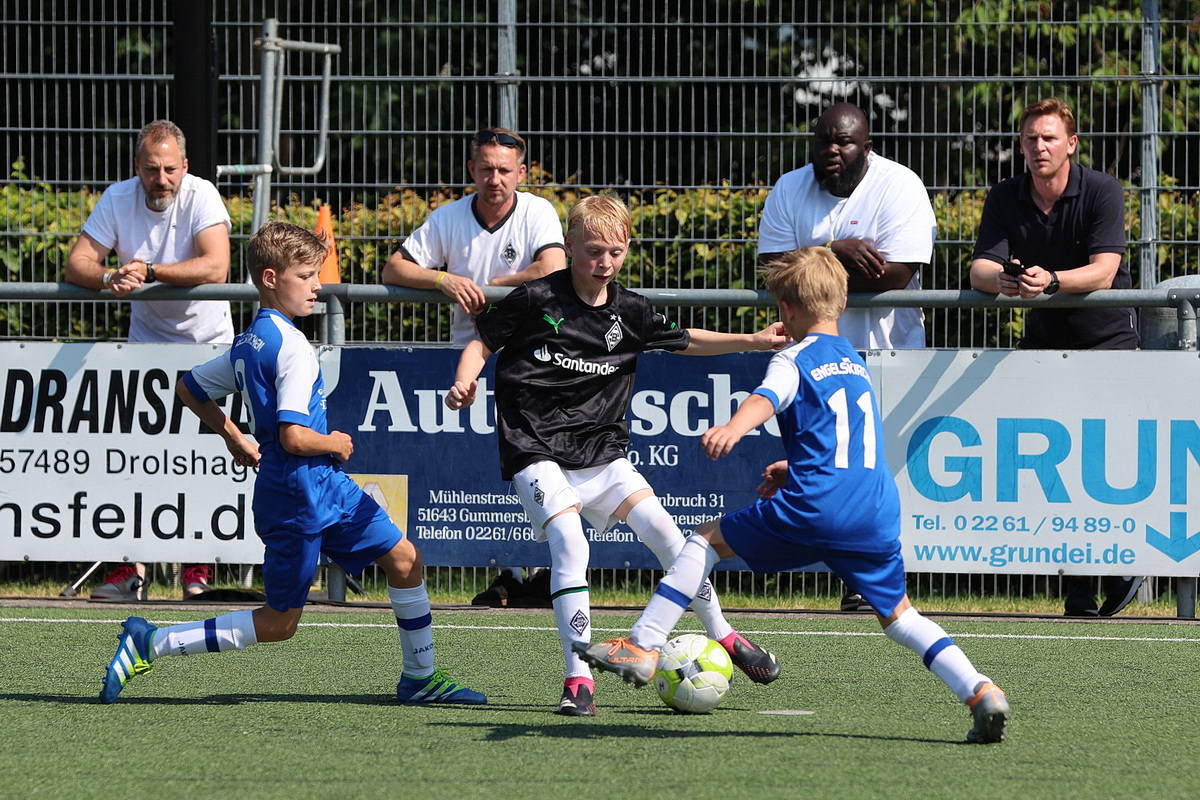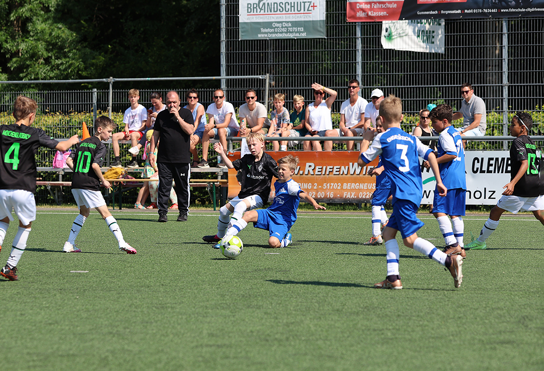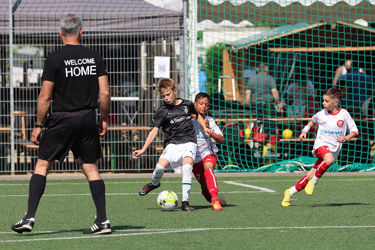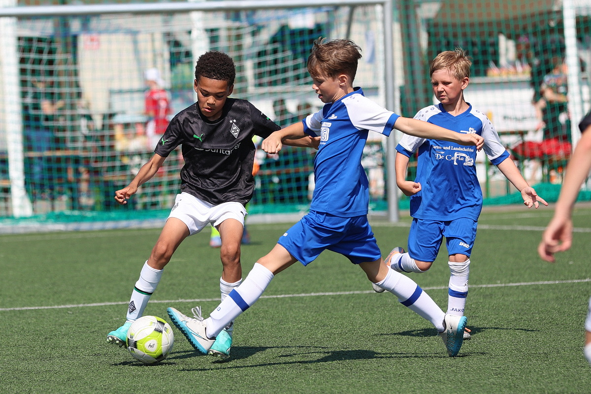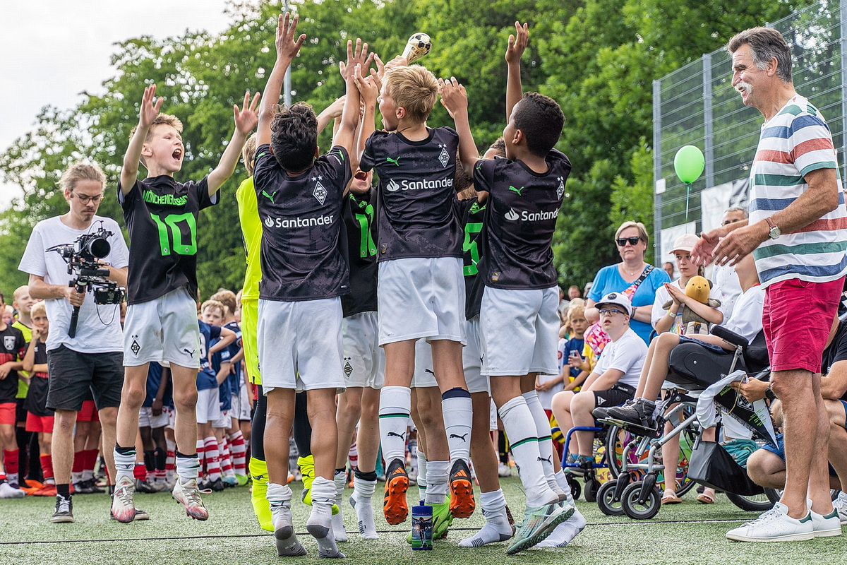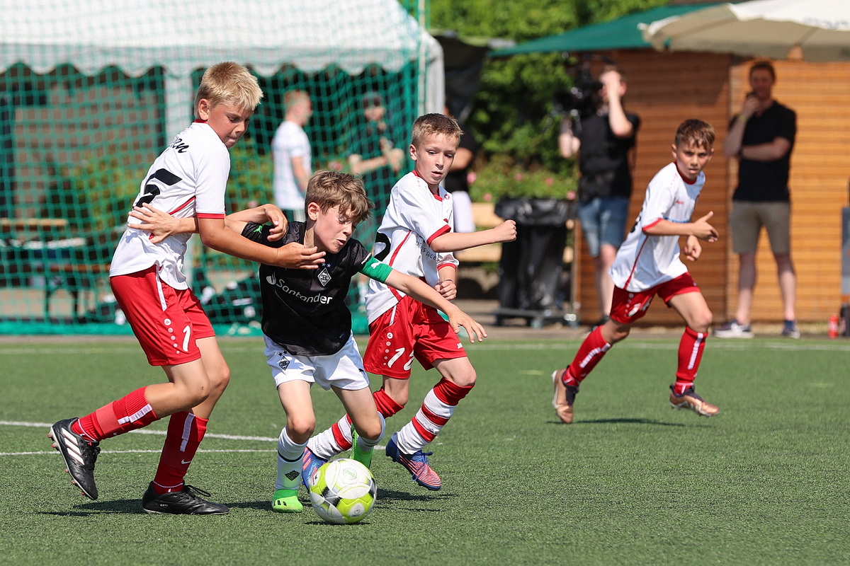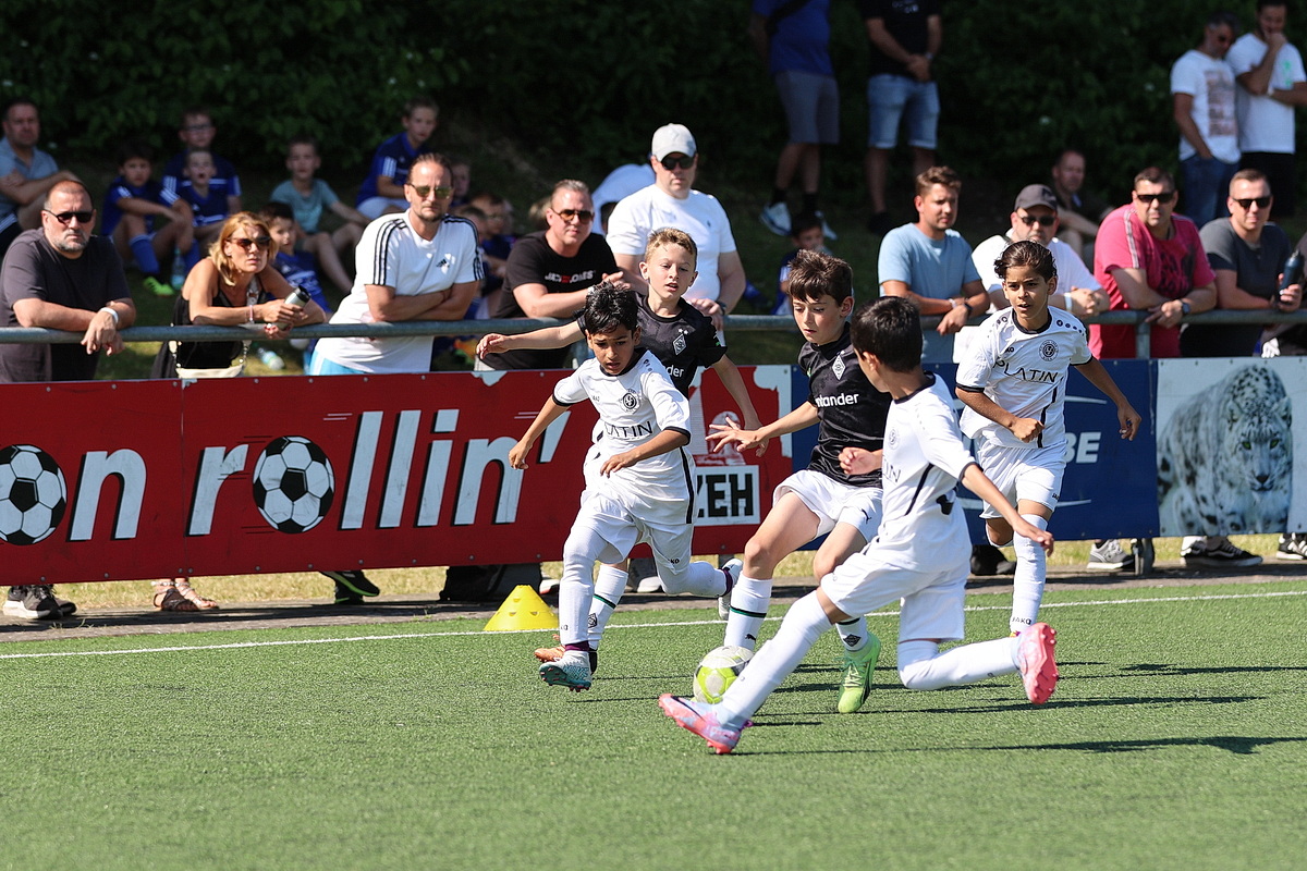 Die Fußballer von Borussia Mönchengladbach durften gleich zweimal den Siegerpokal in die Höhe strecken. Sie setzten sich in den Altersklassen U9 und U10 gegen die namhafte Konkurrenz durch. Bei den Jüngsten (U8), die an Fronleichnam auf Torejagd gingen, hatte am Ende Gladbachs rheinischer Rivale 1. FC Köln die Nase vorn. Der Jugendvorstand der Spielvereinigung kümmerte sich um die Organisation der Turniere – jedes Jahr eine logistische Herausforderung. Es wird zeitgleich auf vier Feldern gespielt.