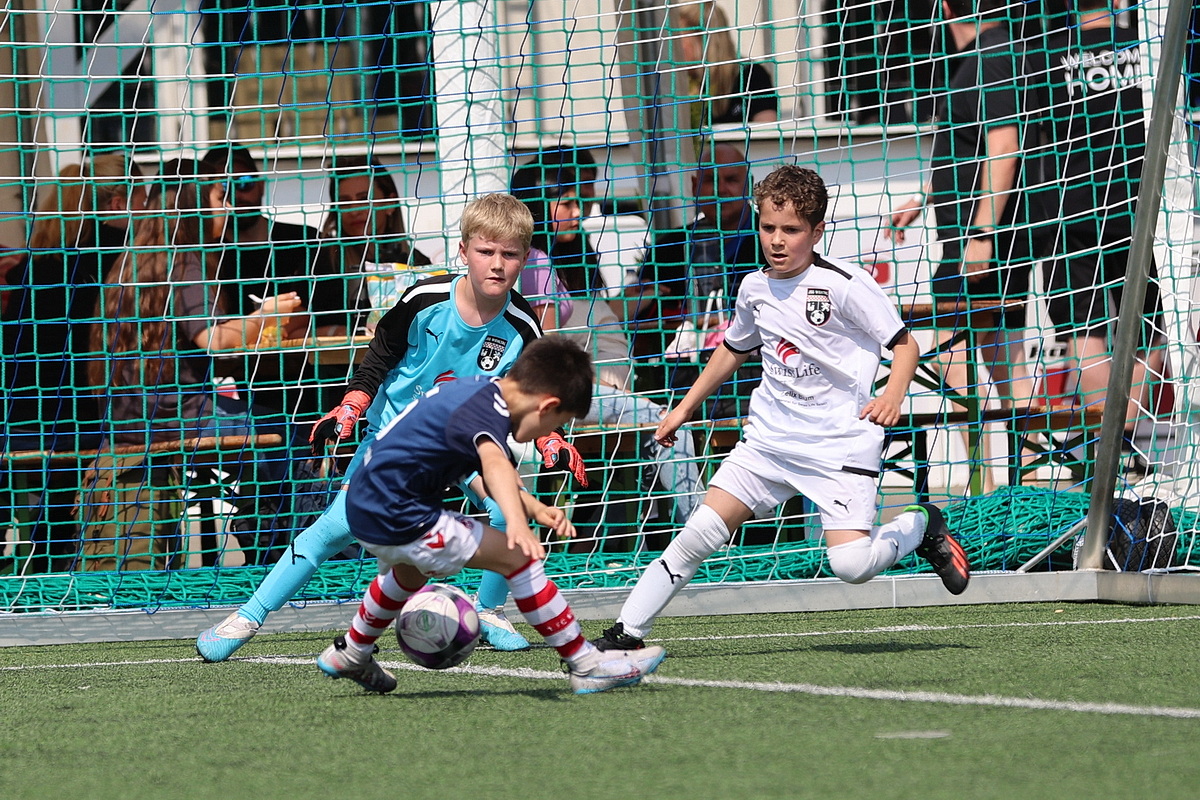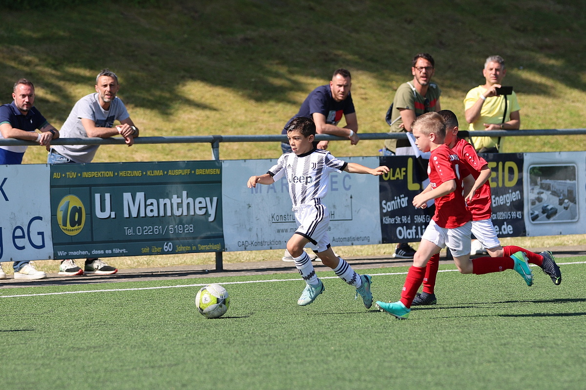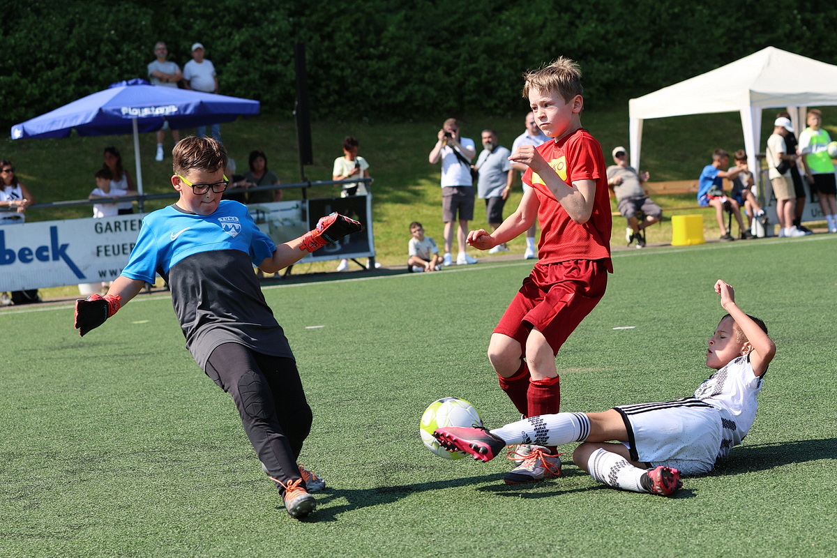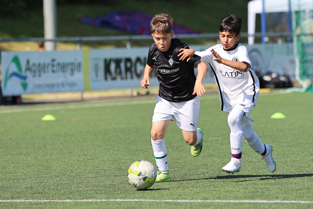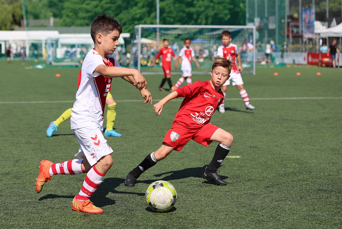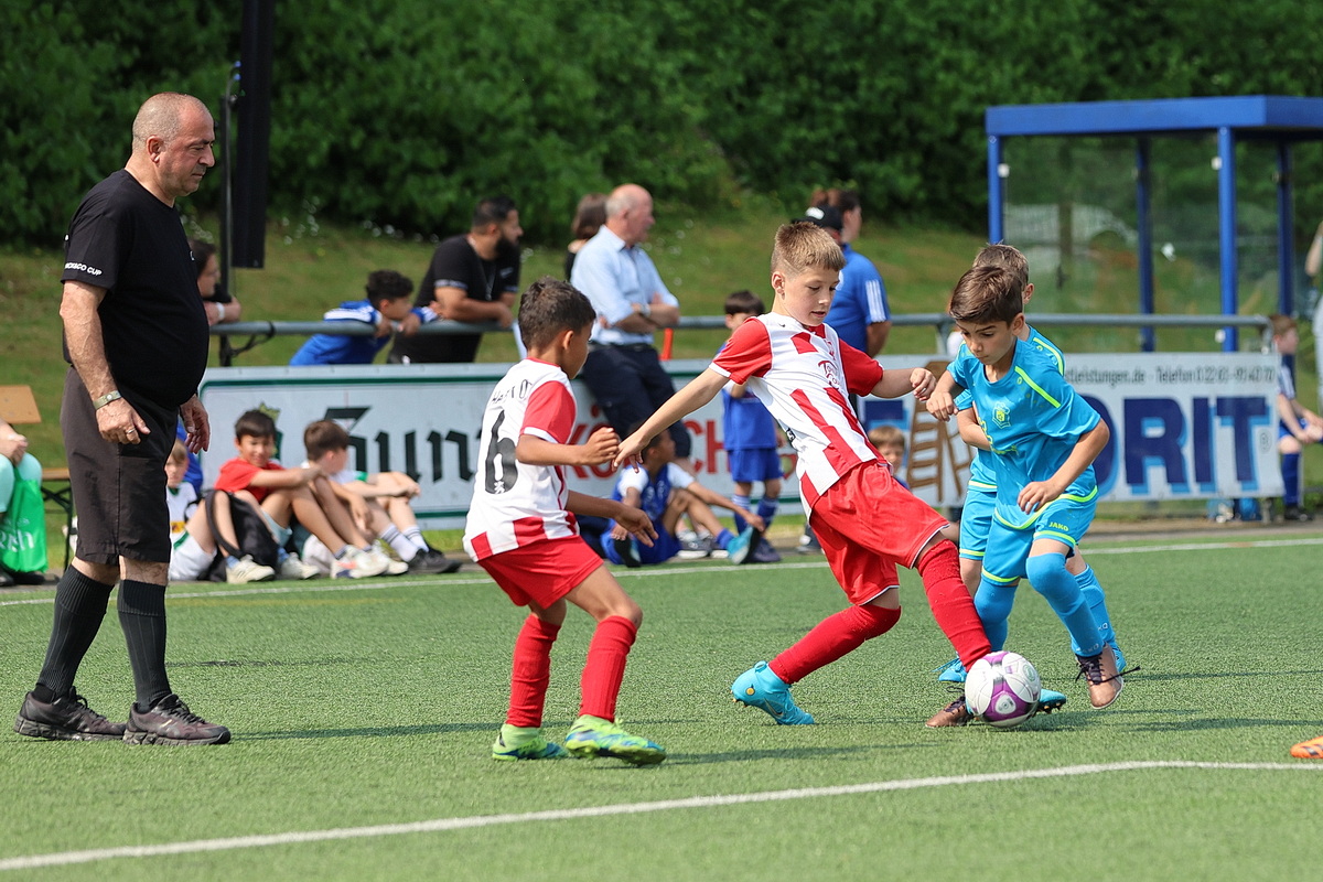 Die Fußballer von Borussia Mönchengladbach durften gleich zweimal den Siegerpokal in die Höhe strecken. Sie setzten sich in den Altersklassen U9 und U10 gegen die namhafte Konkurrenz durch. Bei den Jüngsten (U8), die an Fronleichnam auf Torejagd gingen, hatte am Ende Gladbachs rheinischer Rivale 1. FC Köln die Nase vorn. Der Jugendvorstand der Spielvereinigung kümmerte sich um die Organisation der Turniere – jedes Jahr eine logistische Herausforderung. Es wird zeitgleich auf vier Feldern gespielt.