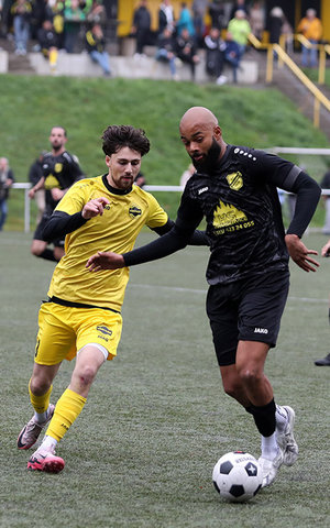 [Hohkeppels Kenan Karaca im Zweikampf mit Julio Molongua.]