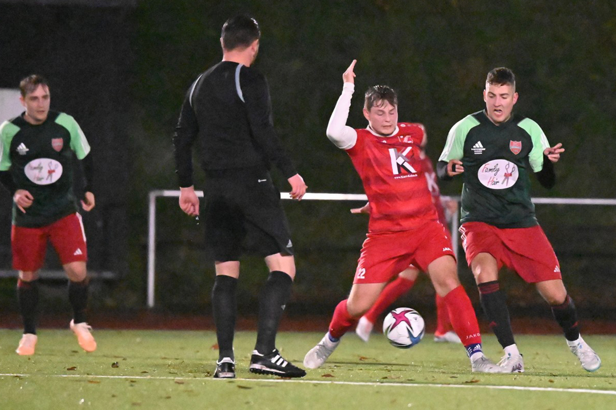 Rot gegen den Biesfelder Tobias Merten (82. grobes Foulspiel)