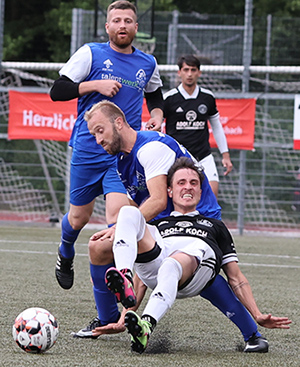 Oberberg - Am zweiten Spieltag des Sparkassen-Cups verbuchen der Landesligist und der Co-Gastgeber den jeweils zweiten Gruppensieg - Geburtstagsgeschenk für DJK-Coach Ufuk Opak.