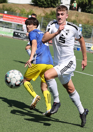 [Yannick Zwiebel ist vor Shogo Aikawa am Ball.]