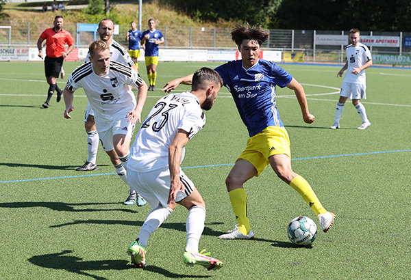 Der SSV Homburg-Nümbrecht setzte sich im Topspiel der 1. Runde gegen den FV Wiehl durch, allerdings bekamen die 150 Zuschauer bloß die „Light-Version“ des Derbys zu sehen. Die Gäste hatten aus Personalmangel ihre Bezirksliga-Reserve geschickt, aus dem Landesliga-Kader war lediglich Felix Sievers dabei. In der Gluthitze entwickelte sich zunächst ein Duell ohne Strafraumszenen. Wiehl verteidigte konzentriert, den Hausherren mangelte es an Tempo und Genauigkeit. Erstmals gefährlich wurde es in der 23. Minute, als der FV nach einem eigenen Eckstoß ausgekontert wurde. Kilian Seinsches Versuch wurde abgeblockt, genauso wie der Abschluss von Tom Hillenbach nach der anschließenden Ecke.