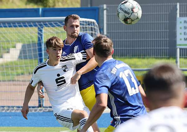 Keeper Nico Lieder verhinderte das 1:0, indem er gegen Seinsche, der aus spitzem Winkel abgezogen hatte, die Oberhand behielt (39.). Ein Schuss von Niklas Clemens blieb an einem Abwehrbein hängen (40.). Wegbereiter der inzwischen verdienten SSV-Führung war Lukas Grünberg. Der Linksverteidiger wurde nach einem beherzten Vorstoß aus der eigenen Hälfte kurz vor dem Sechszehner unsanft gestoppt. Den fälligen Freistoß zirkelte Christian Rüttgers über die Mauer hinweg in die Maschen.