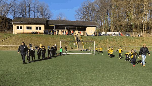 Gestern trafen sich die Bambini- und F-Jugendkicker des SV Eintracht Hohkeppel zu einem vereinsinternen Duell. Im Achim-Lammers-Waldstadion fanden sich zu diesem Anlass Eltern und Zuschauer ein, um ein Zeichen für den Frieden zu setzen. Alle Einnahmen und jeder gespendete Euro gehen in die Ukraine. Ein externer Sponsor verdoppelte den Betrag und so schafften es die jungen Fußballer, 600 € zu erspielen. Interessierte Spielerinnen und Spieler der Jahrgänge 2013 bis 2016 können sich übrigens bei Pascal Schiffer (Tel.: 0171/68 42 998) zum Probetraining anmelden.