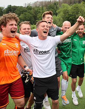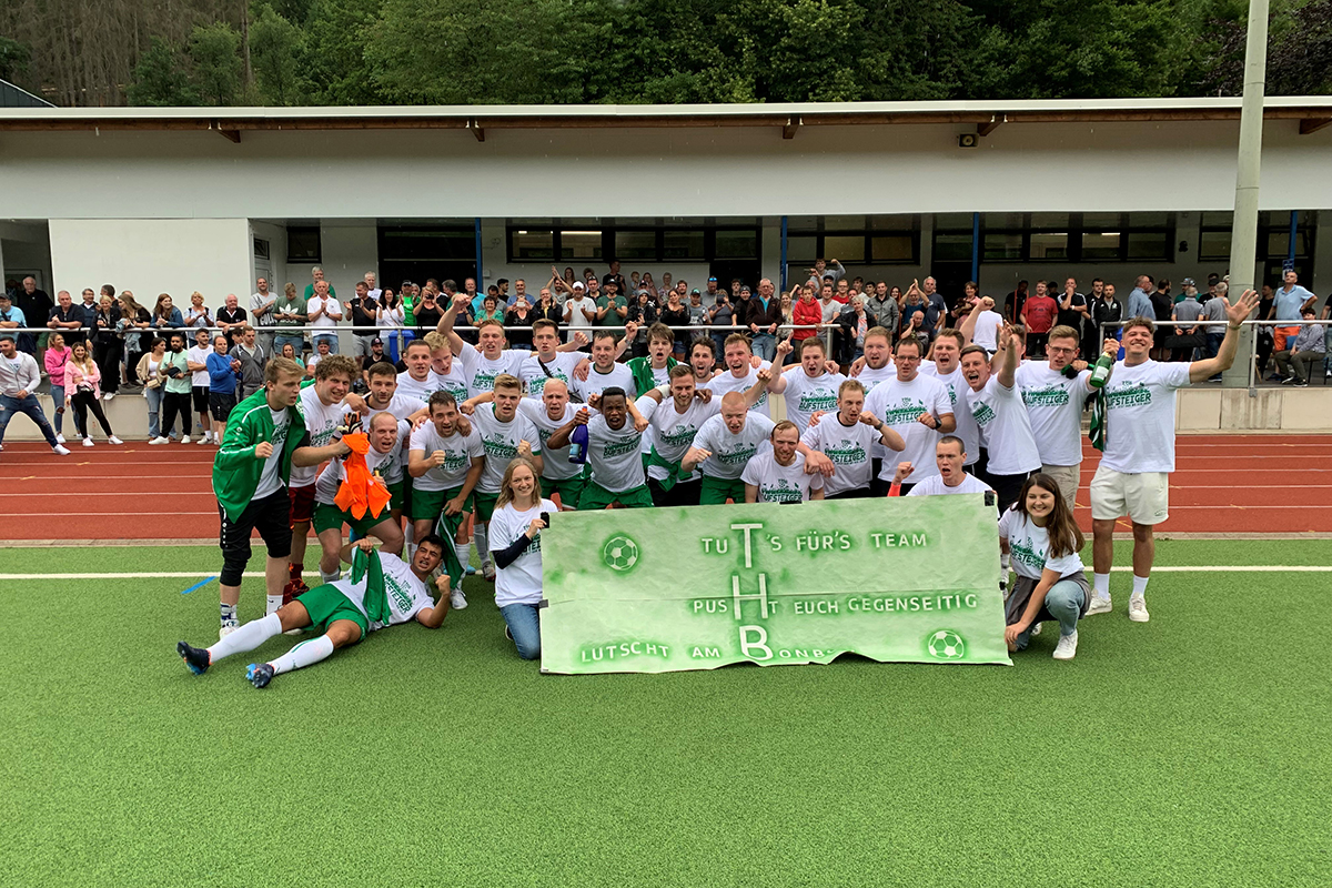 Der TuS Homburg-Bröltal ist aufgestiegen. Durch einen am Ende verdienten 3:1-Erfolg gegen Rot-Weiß Olpe verbuchte die Equipe von Spielertrainer Bastian Sellau die nötigen drei Zähler, um die Qualifikation für das bergische Oberhaus perfekt zu machen. Das grün-weiße Lager schien nach dem Schlusspfiff zu explodieren. Der Jubel kannte bei den Aktiven und beim Anhang keine Grenzen. Die vorbereiteten Aufstiegs-T-Shirts wurden trotzdem erst eine ganze Zeit nach dem Schlusspfiff aus dem Auto geholt. „Jungs, jetzt geht’s: Ab dafür. Feiern, feiern, feiern“, brüllte Sellau im Spielerkreis.