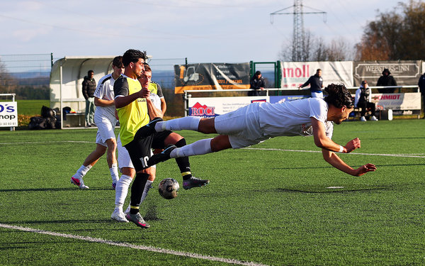 [Berkan Durdu kann nicht davon profitieren, dass der Gästekicker an der Flanke vorbeifliegt.]