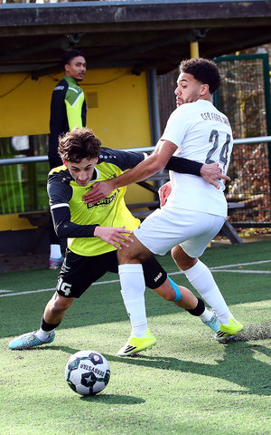 [Emre Bodur wird von Mils Whitfield bedrängt.]