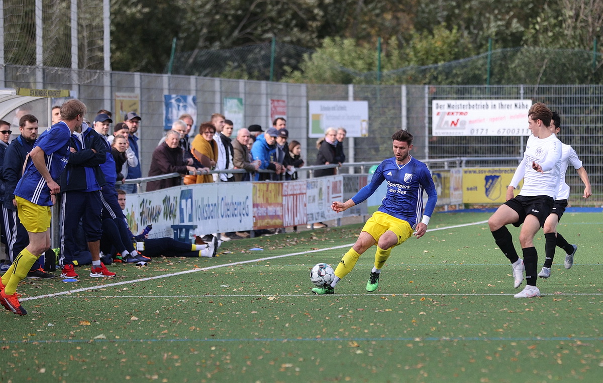 Beim ersten vorzeigbaren Angriff des SSV wurde Niklas Clemens abgeblockt (25.), auf der Gegenseite verzog Philipp Strom, nachdem Klur den Ball nach einer Freistoßflanke hatte fallen lassen (28.). Dann leitete der Schlussmann das 1:0 ein: Jonas Henscheid verlängerte das hohe Zuspiel mit dem Kopf in den Lauf von Niklas Clemens, der Torwart Martin Michel mit einem überlegten Lupfer überwand. Dieser Treffer fungierte als der berühmte Knotenlöser, denn danach brachen bei den Badestädtern alle Dämme und die Nümbrechter nutzten jede sich bietende Chance: Auf Vorlage von Jan Leyerer und Henscheid jagte Marvin Hennecken das Leder unters Gebälk, Kilian Seinsche erhöhte nur 120 Sekunden später mit einem platzierten Flachschuss von der Strafraumkante auf 3:0 und ließ kurze Zeit später sein fünftes Saisontor folgen.