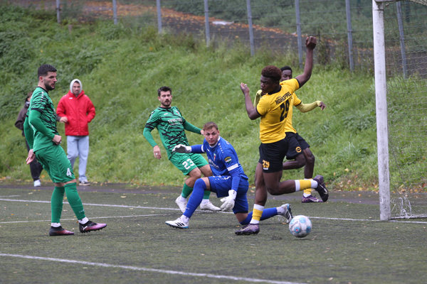 [Alexander Guiddir scheiterte bei dem Versuch, per Hacke den Führungstreffer zu erzielen (oben). Mike Owusu gelang das dann wenig später nach Guiddirs Vorarbeit.]