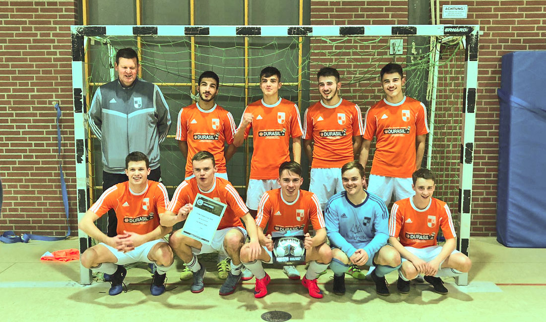 Toller Erfolg für die A-Junioren des FV Wiehl: Das Team von Coach Ingo Kippels gewann in Übach-Palenberg den U19-Futsalcup und ist damit neuer Mittelrhein-Champion in der Halle. Der Sieg war gleichbedeutend mit der Qualifikation für die Westdeutsche Meisterschaft, die am 8. und 9. Februar in der Sportschule Wedau in Duisburg ausgetragen wird. Die Mannschaften, die in der Mittelrheinliga die Plätze eins bis zehn belegen (Stichtag: 1. Dezember 2019), hatten an dem Turnier teilgenommen. „Wir sind sehr stolz auf die Jungs, die es in diesem erlesenen Feld souverän gemacht haben“, freute sich Kippels nach dem Coup.