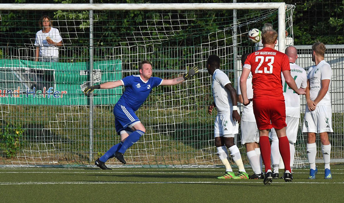 Die Gastgeber müssen sich wie im falschen Film gefühlt haben. Die Chance zur Führung vergeigt und dann bis zur 30. Minute schon mit 0:6 (in Worten: null zu sechs) hinten gelegen. Marian Schiedeck, Andreas Matus, Abass Conté, René Radermacher, Moritz Müller trafen nach Belieben. Da machte es auch nichts, dass Tor Nummer sechs aus einem Eigentor von Christian Metten resultierte. „Ich habe mit deutlich mehr Gegenwehr durch die Immekeppeler gerechnet, die haben ja eine Bombensaison gespielt. Das hat mich schon etwas überrascht. Wir haben das aber sehr gut gemacht und jeder Schuss auf das Tor in den ersten 30 Minuten war ein Treffer“, freute sich SSV-Coach Marcel Wittfeld.