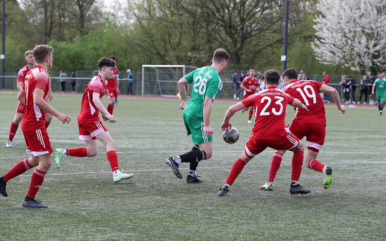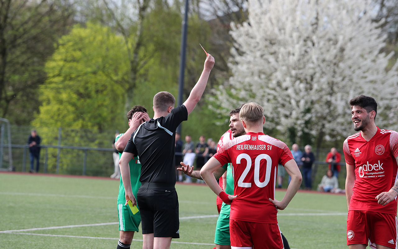 In der Schlussphase sah Lindlars Torjäger Maurice Nguyen die Gelb-Rote Karte wegen Meckerns. Hoffnung keimte bei den Hausherren dennoch kurz noch einmal in der Nachspielzeit auf: Jonathan Spicher wurde regelwidrig im Strafraum gestoppt und verwandelte den anschließenden Elfmeter selbst. Eine wirkliche Chance zum Ausgleich ergab sich im Anschluss jedoch nicht. „Ein 3:3 wäre schmeichelhaft gewesen. Heiligenhaus hat verdient gewonnen“, resümierte Kiuzauskas. Für Esins war es ebenfalls ein verdienter Erfolg: „Der Sieg fühlt sich sehr gut an.“