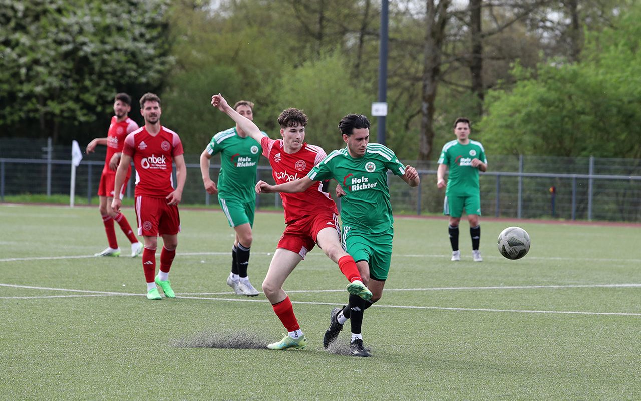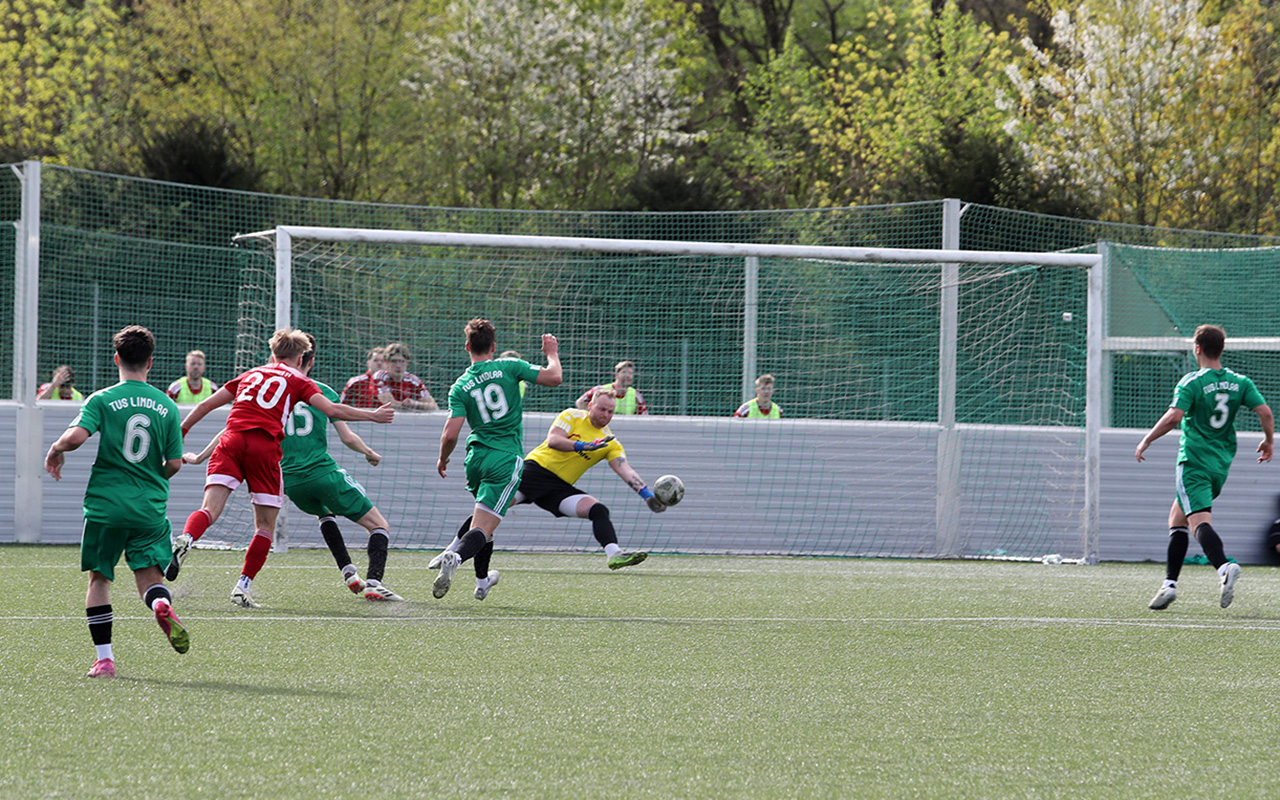 Lucas Musculus brachte die Gäste kurz nach der Anfangsviertelstunde in Führung. „Wir waren in der ersten Hälfte der ersten Hälfte die bessere Mannschaft, danach kam Lindlar mehr ins Spiel“, berichtete Trainer Andy Esins. Folgerichtig erzielte der Tabellenführer den Ausgleich durch Moritz Stellberg nach einer halben Stunde. In einem ausgeglichenen Duell ging es mit einem leistungsgerechten 1:1-Unentschieden in die Pause.