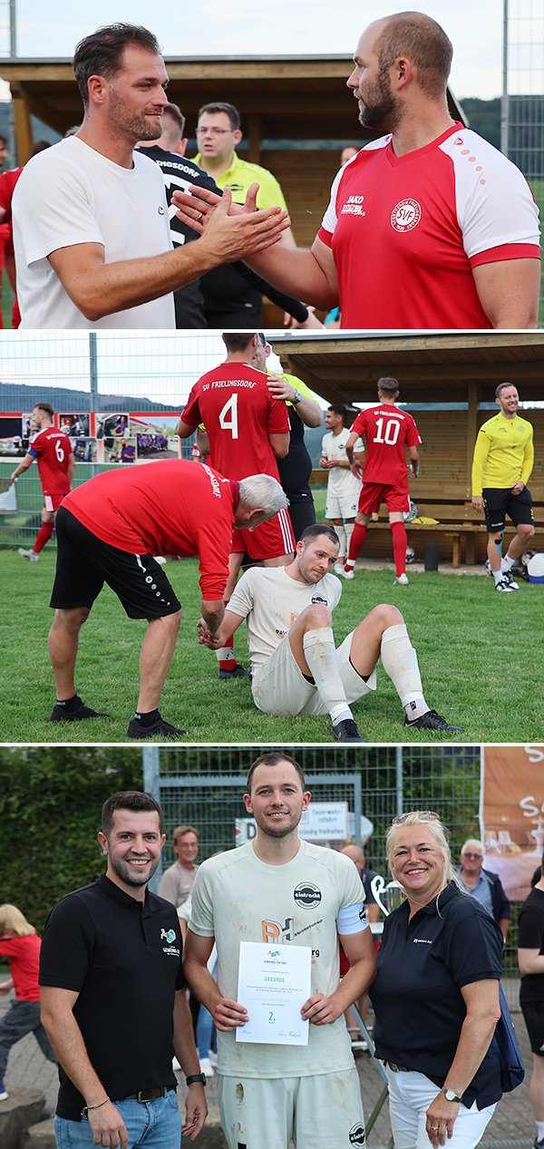 Die vierte Auflage des Lindlarer Gemeinde-Cups der Volksbank Berg ist Geschichte. Nach vier Jahren Pause hatte das Turnier sein Comeback gefeiert. Dabei erwies sich der SV Linde als hervorragender Gastgeber. Mitorganisator Arlind Oseku bedankte sich beim Verein für „eine super Woche“ und führte zusammen mit Tanja Paas von der Volksbank Berg die Siegerehrung durch. Der SV Frielingsdorf löste den VfR Wipperfürth als Titelträger ab. Dritter wurde Rot-Weiß Olpe durch einen 6:0-Erfolg im „kleinen“ Finale gegen die Hausherren. Im Übrigen räumte der A-Ligist gleich alles ab, denn Sören Wendeler wurde zum besten Keeper gewählt und Leon Dema sicherte sich mit fünf Treffern die Torjägerkrone. Alle Einnahmen des Gemeinde-Cups werden zu gleichen Teilen an die Jugendabteilungen der teilnehmenden Klubs ausgeschüttet.