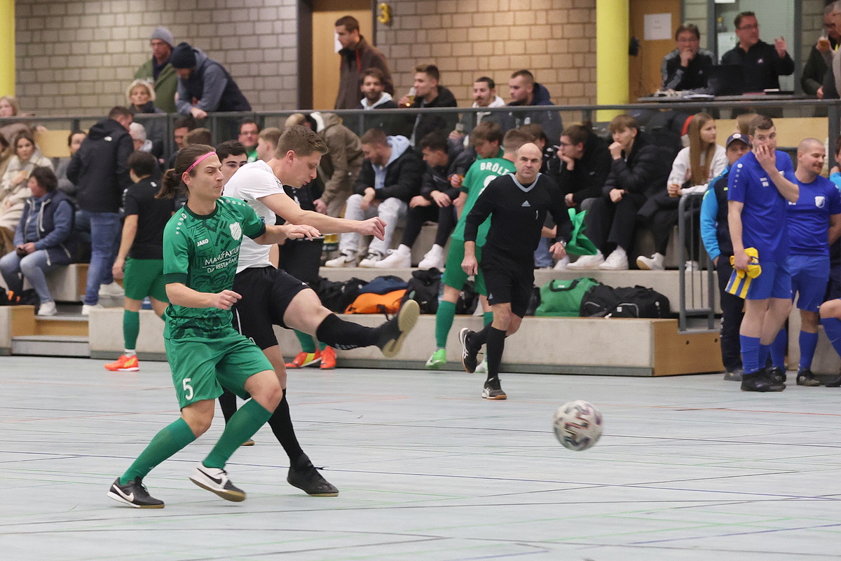 Die Fußballinteressierten hatten offenbar richtig Lust auf den Hallenkick, denn die GWN-Arena war bestens gefüllt. „Fantastisch. Die Tribüne war voll“, freute sich SSV-Geschäftsführer Matthias Faulenbach. „Wir haben ein tolles Turnier mit torreichen Spielen gesehen.“ Für die Gastgeberteams war schon in der Vorrunde Schluss, immerhin konnten beide jeweils einen Sieg erringen. Auch der BV 09 Drabenderhöhe (Kreisliga B) und der C-Ligist SSV Hochwald schieden vorzeitig aus.