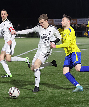 Ebenfalls in den Händen des FV-Schlussmanns landete einen Seitfallzieher von Robin Brummenbaum, der die akrobatische Einlage nach einer Flanke von Rituski Oyama ablieferte (10.). Die Hausherren - mit U19-Akteur Yasin Tarikus in der Startformation - schafften kaum einmal Entlastung, auf dem Weg nach vorne gingen die Bälle zu schnell verloren. Die Elf von Marcus Voike konnte aber kein Kapital aus ihrer Überlegenheit schlagen. Vollmer baggerte einen Schuss von Felix Adamietz in Volleyballer-Manier weg (19.), ehe der Keeper auch gegen Fritz Schäfer parierte (22.).